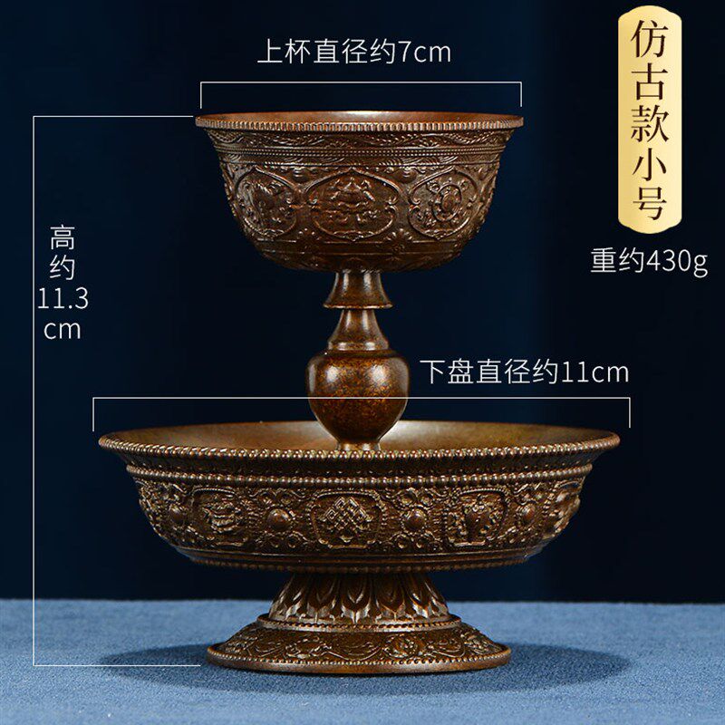 慧宝新升级做旧黄铜护法杯B款304不锈钢内胆杯加铜双层供杯供碗