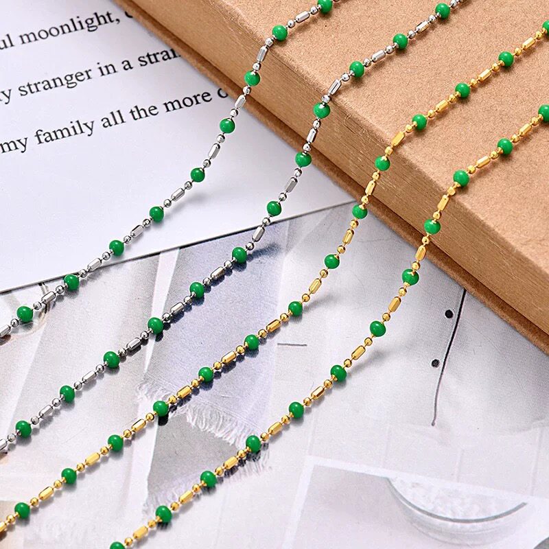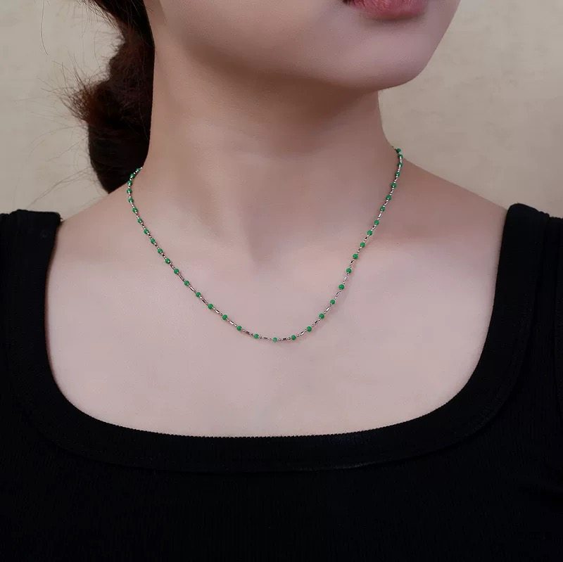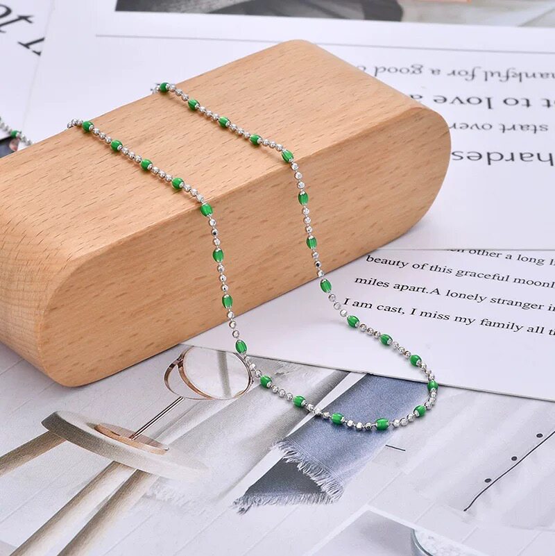 新款时尚设计感项链绿竹节银925链子银白色圆珠链万能链生日礼物
