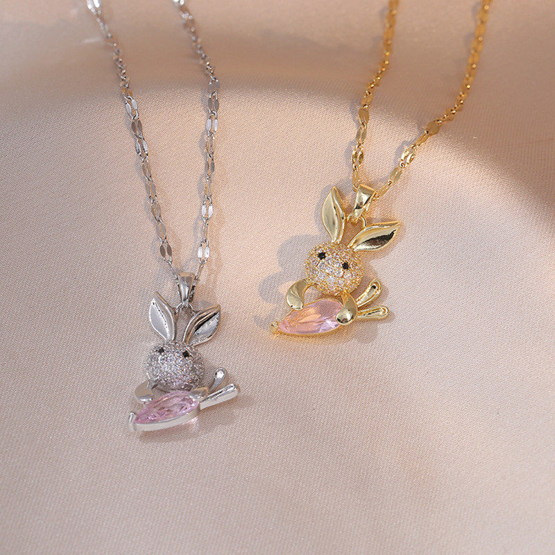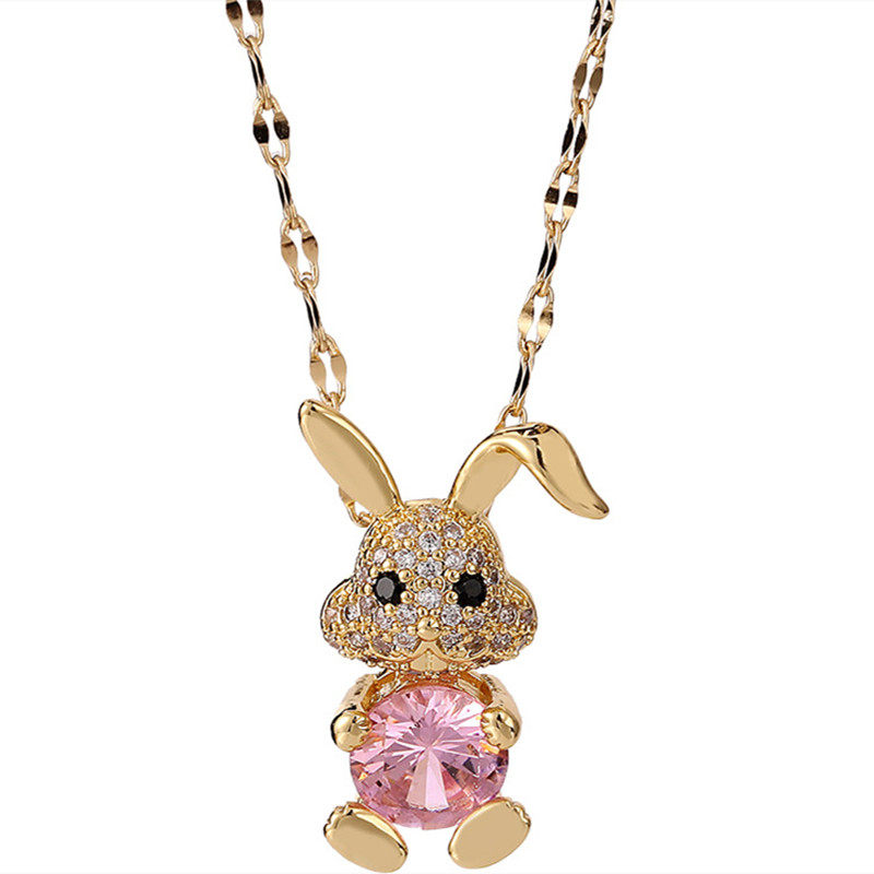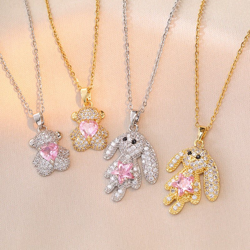 儿童项链女童公主饰品女孩闺蜜粉色白色水晶兔子配饰首饰六一礼物