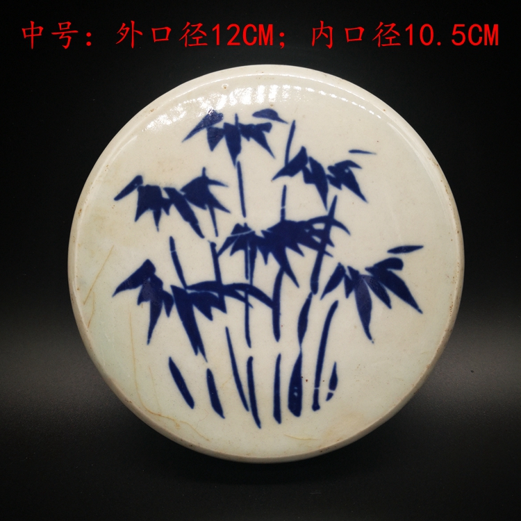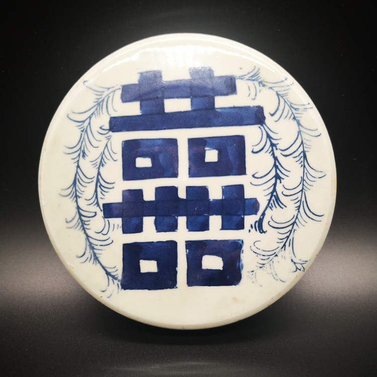 青花喜字罐盖子 缠枝莲老罐盖 冰梅茶叶罐盖置 古玩古董老货配件