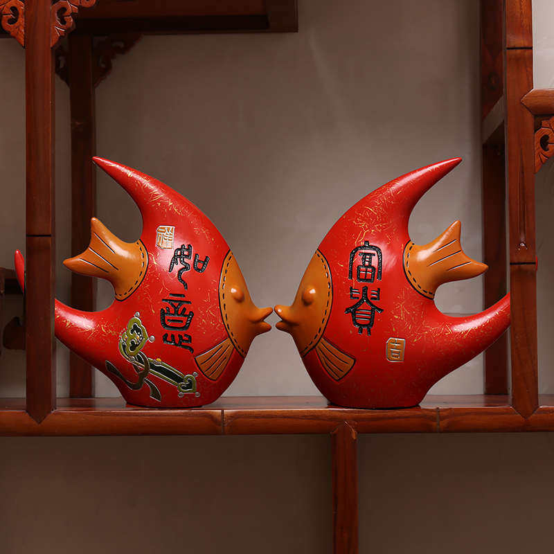 博古架工艺玄关客厅小酒柜陶瓷B摆件鱼隔断对进门中式装饰品入户