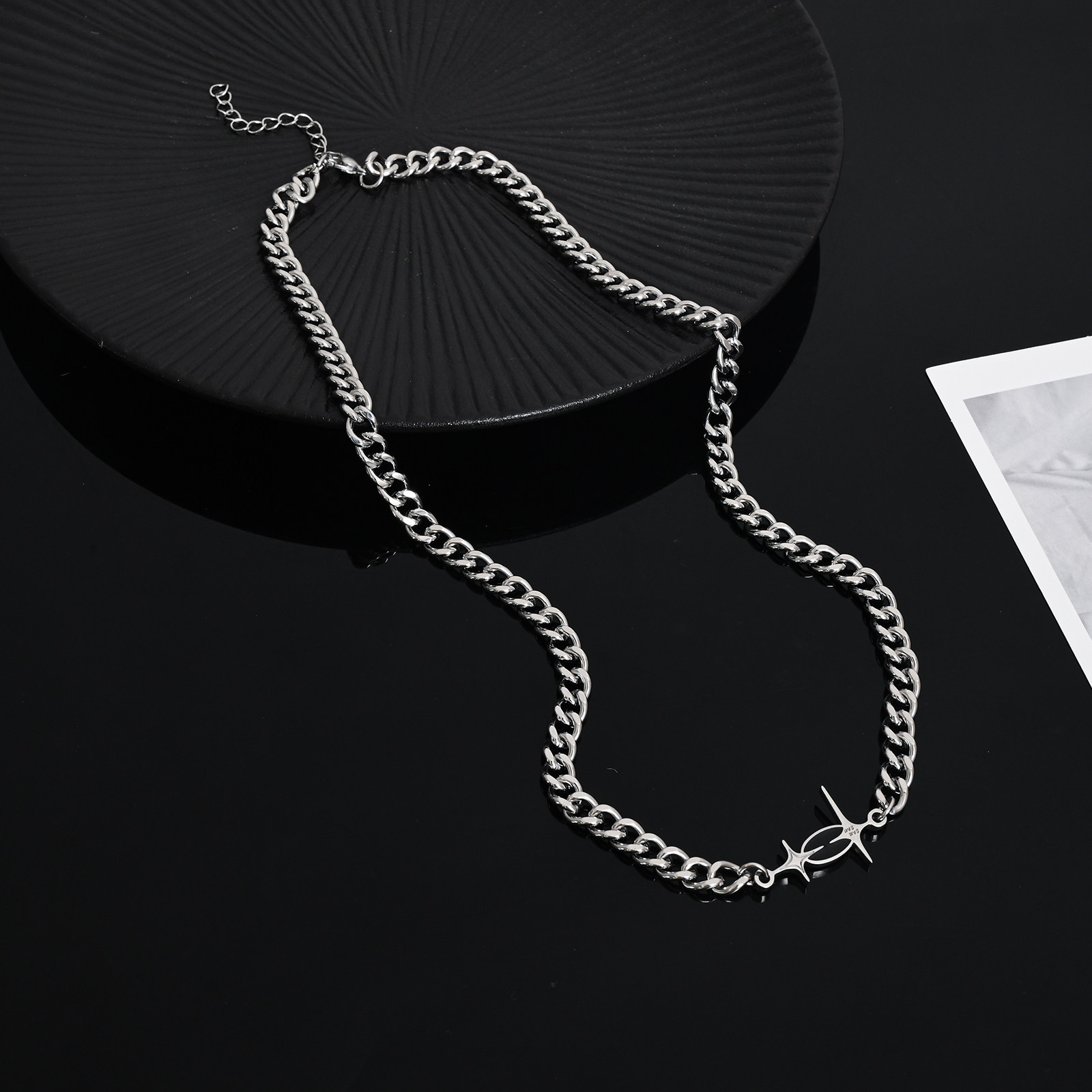 洗澡可戴!原创黑色芒星钛钢项链男中性风小众高级感古巴链锁骨链