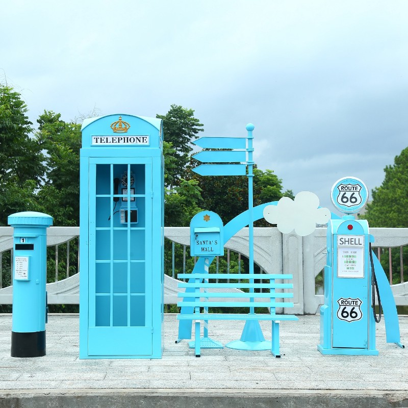 欧式铁艺邮筒电话亭储物柜路标指示牌大型拍摄道具网红店装饰摆件