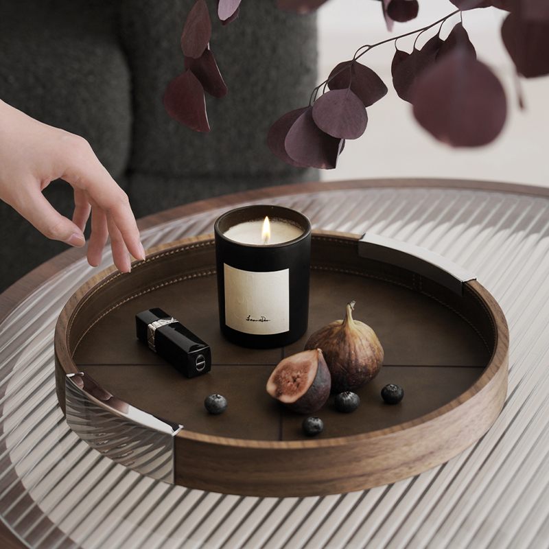 胡桃木托盘家用餐具坚果盘茶点心盘实木质圆盘装饰品现代简约摆件