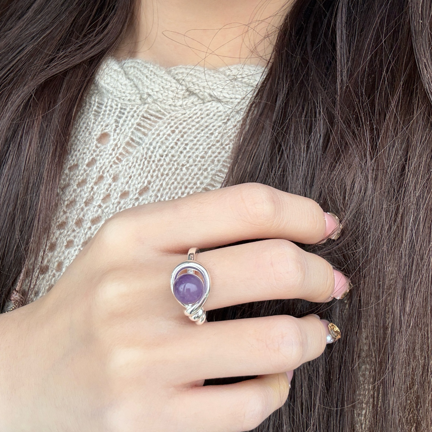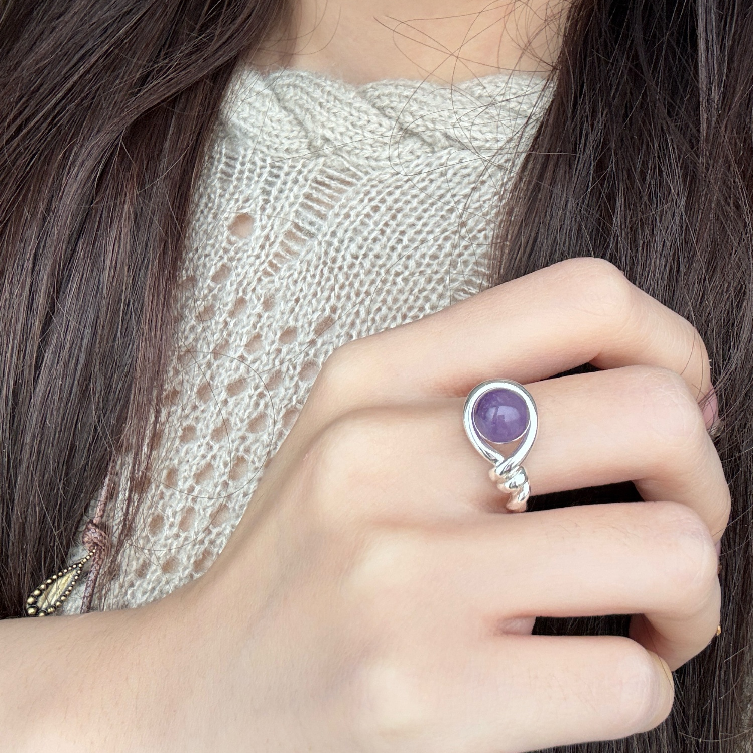 hucares「紫色星轨」定制紫水晶缠绕设计银色戒指原创设计