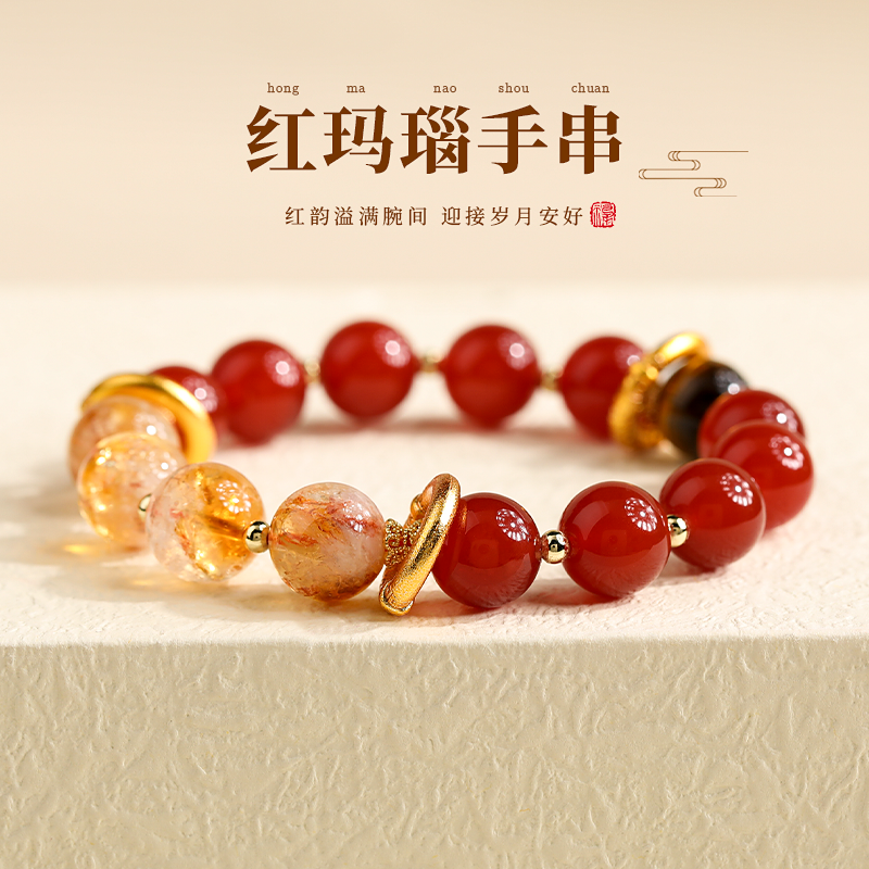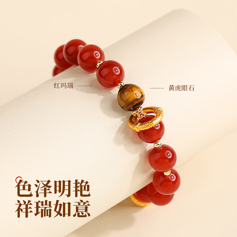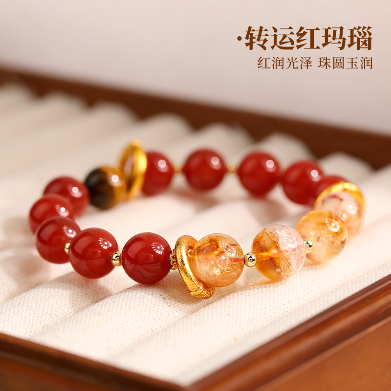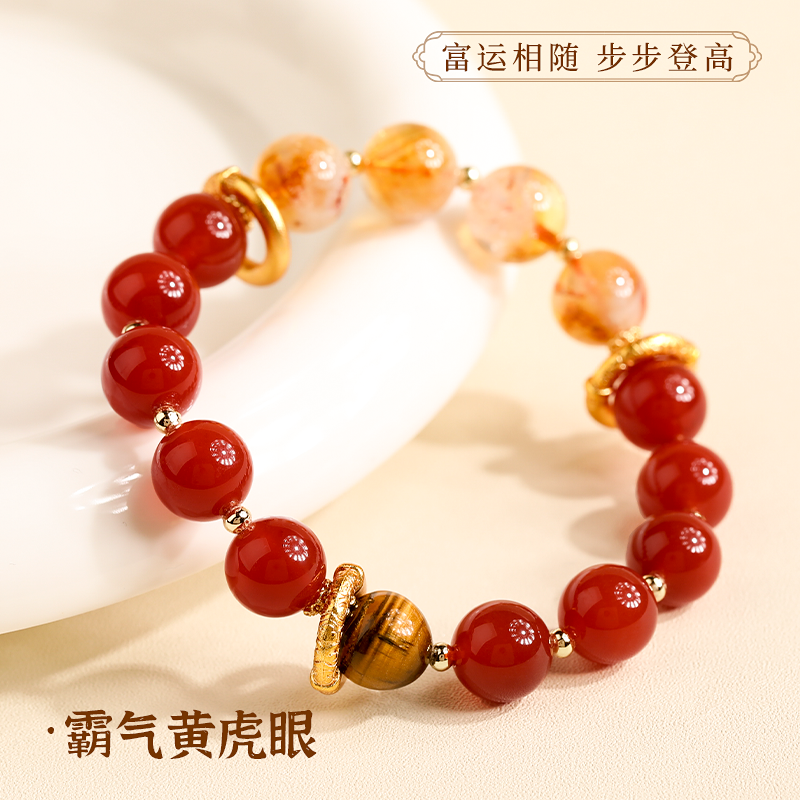 红色玛瑙黄水晶虎眼石串珠手串女轻奢小众精致闺蜜手链本命年手饰