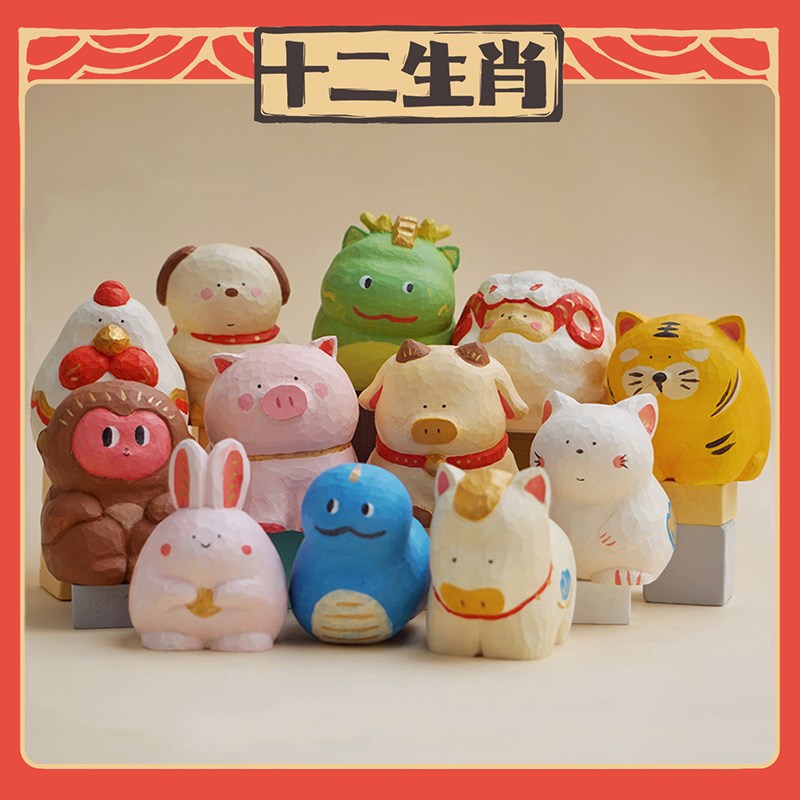 【大美术馆】十二生肖摆件2025蛇年礼物可爱小猪牛鸡桌面车载手办