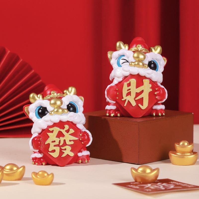 小狮子摆件家居入户门玄关国潮摆件麒麟手办喜庆醒狮装饰品乔迁礼