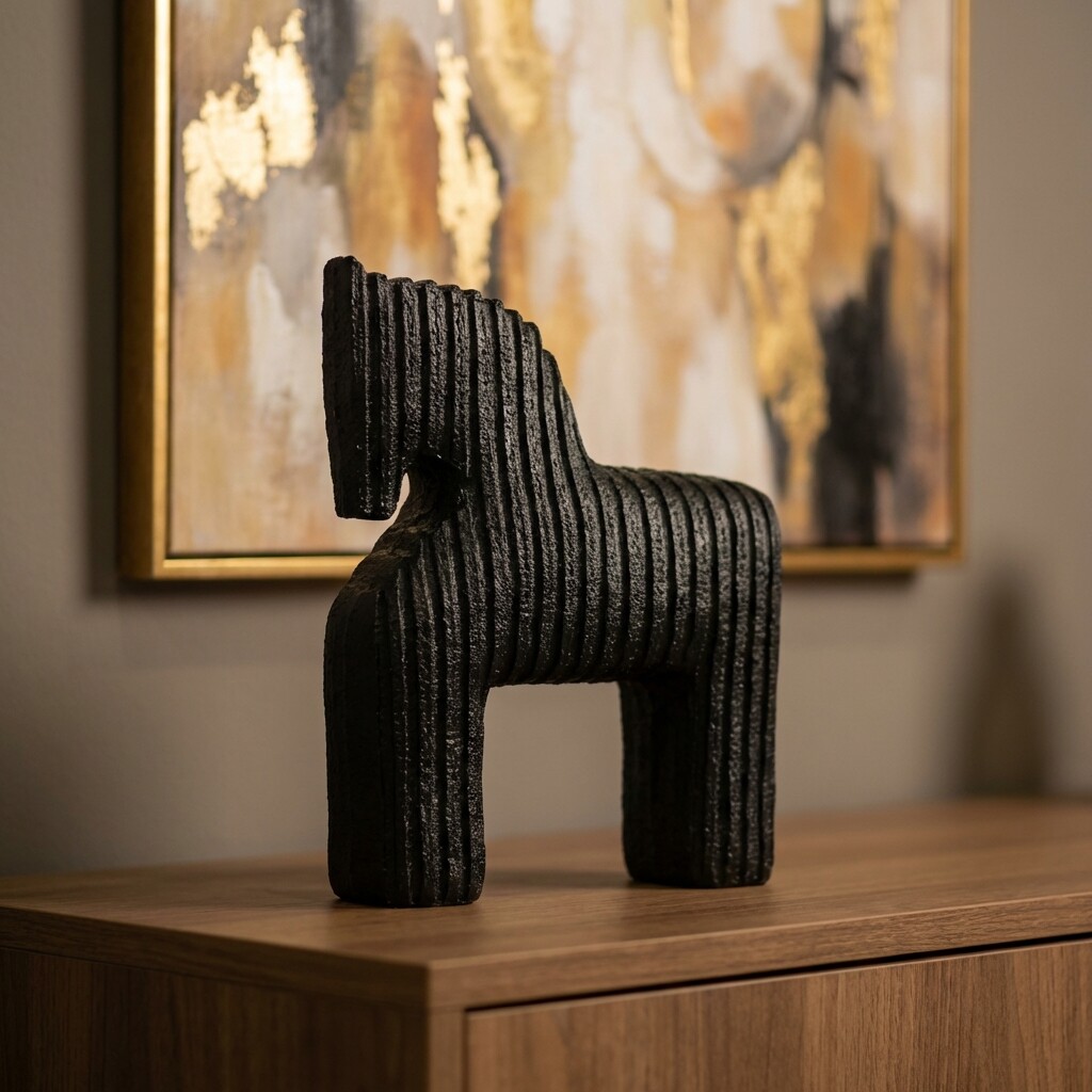 黑色条纹马创意造型装饰摆件客厅书房电视柜现代简约高级感艺术品