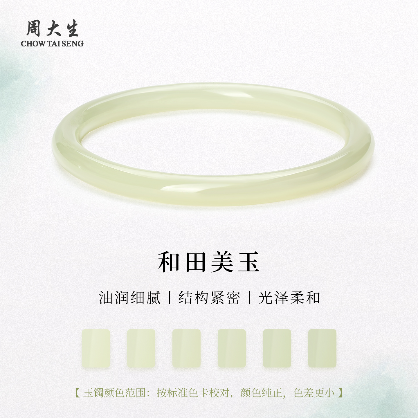 周大生官方和田玉黄口手镯天然高端细条真玉正品送女友生日礼物