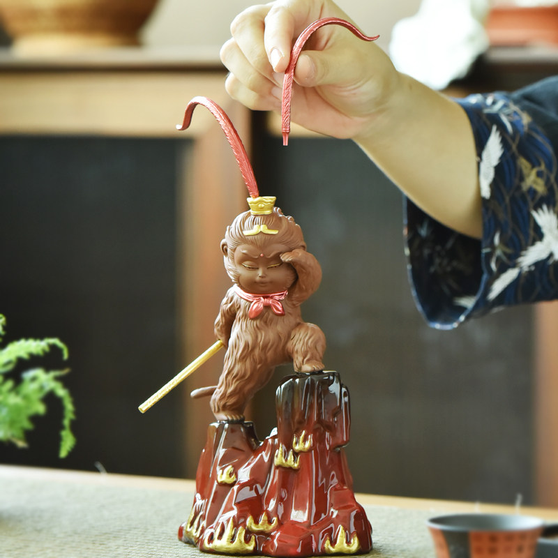 齐天大圣孙悟空鱼缸造景中式家居桌面装饰品茶桌创意紫砂茶宠摆件