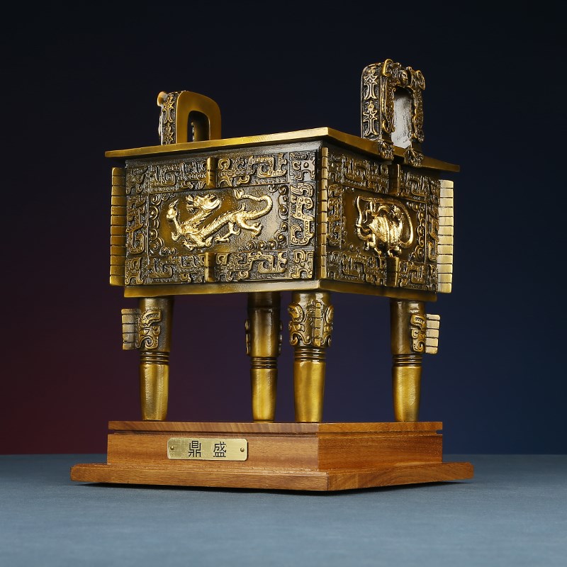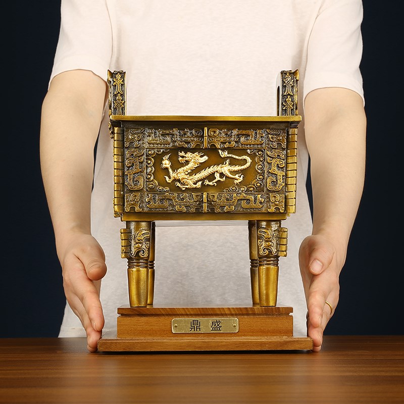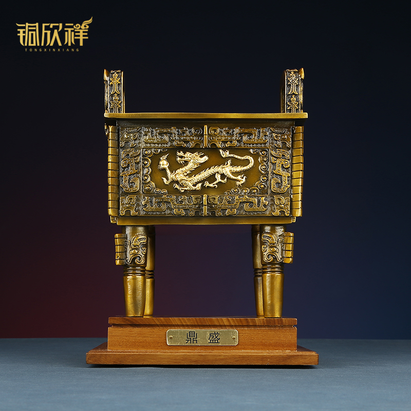 铜欣祥 黄铜四神兽四方鼎摆件鼎盛客厅办公室桌面装饰品开业送礼