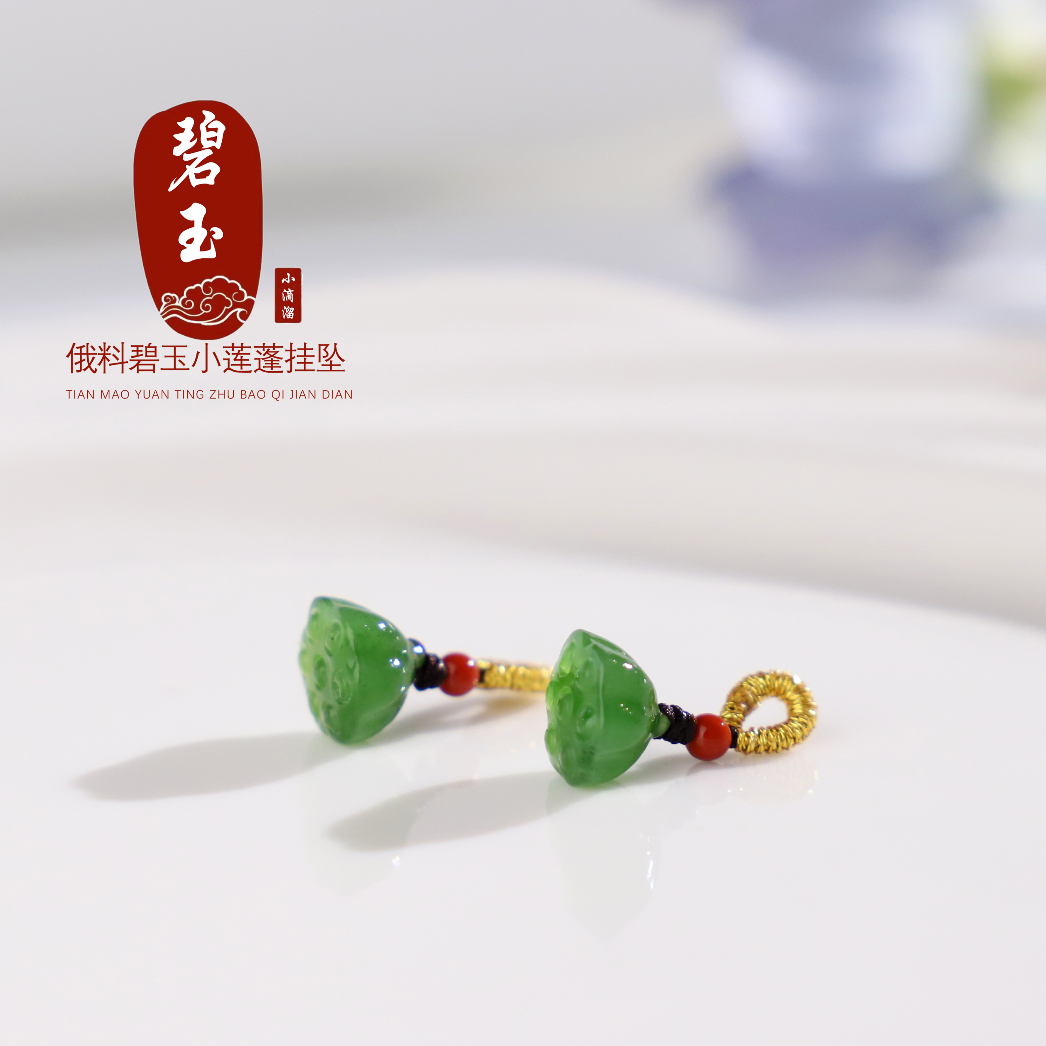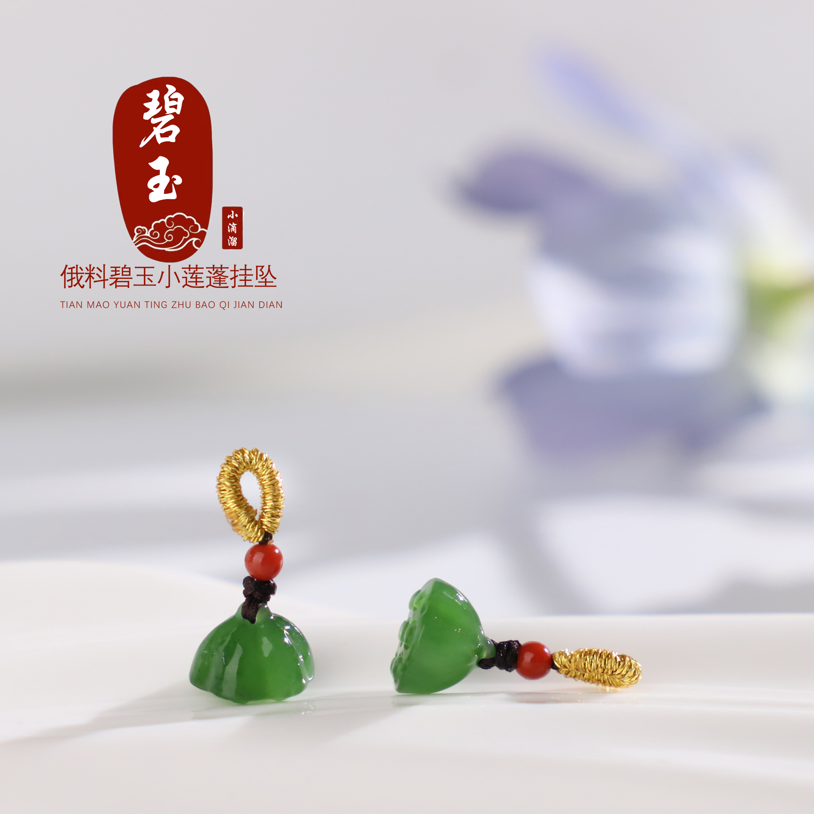 正品天然俄料和田玉碧玉莲蓬小滴溜 小挂坠 精选阳绿色手链吊坠饰