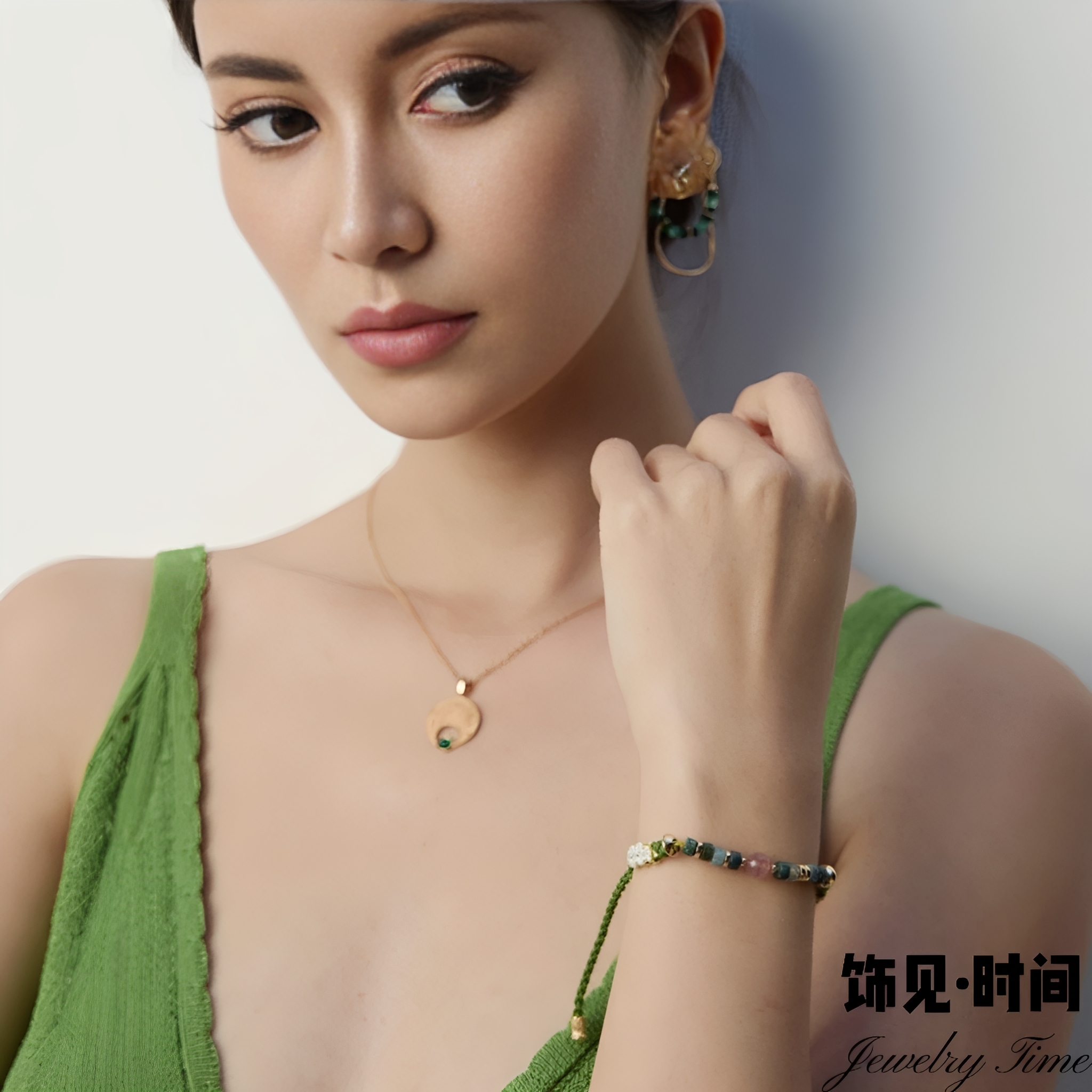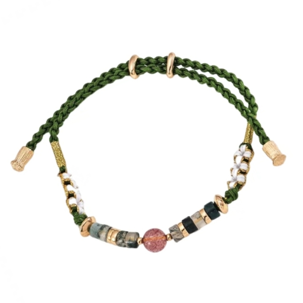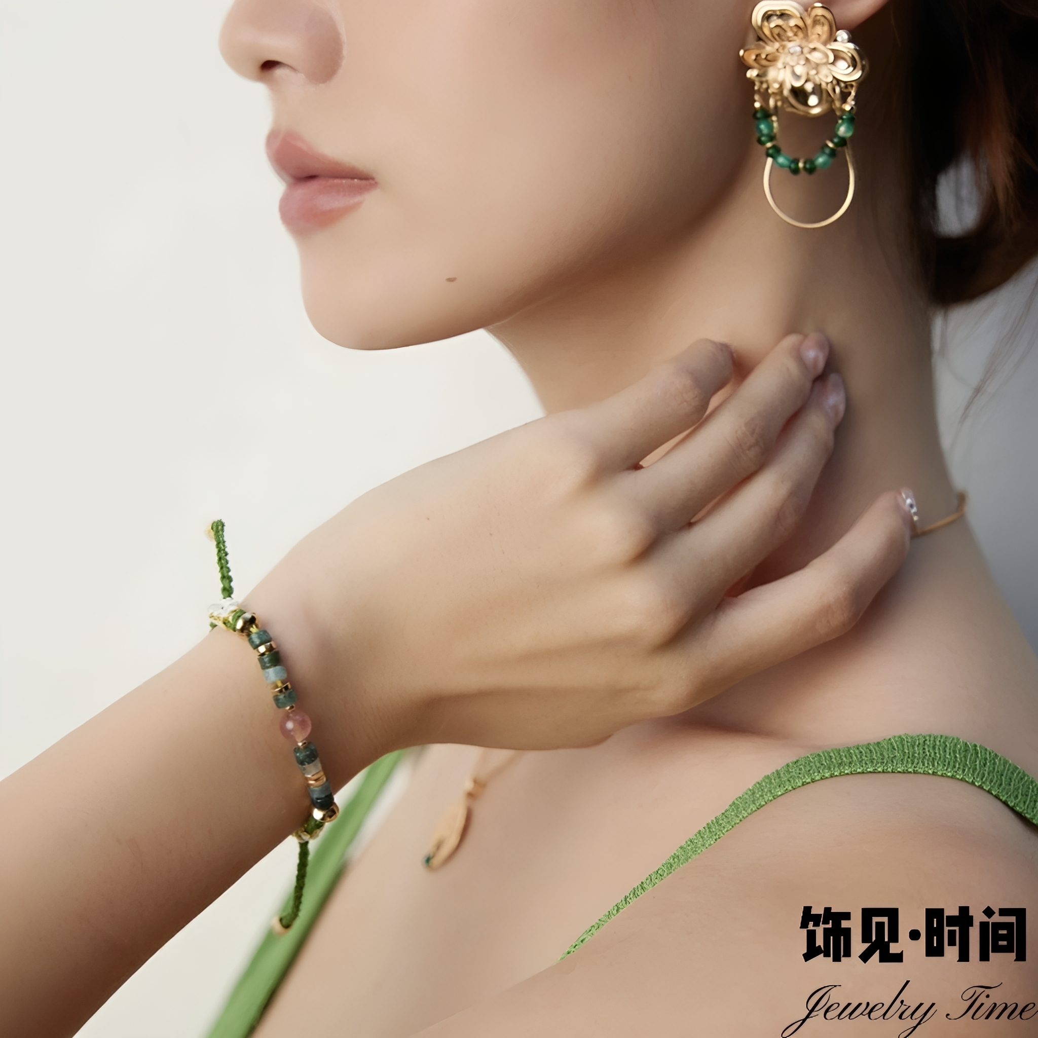新中式甜美水草玛瑙草莓晶手串绿色编织手绳小众招桃花手链送闺蜜