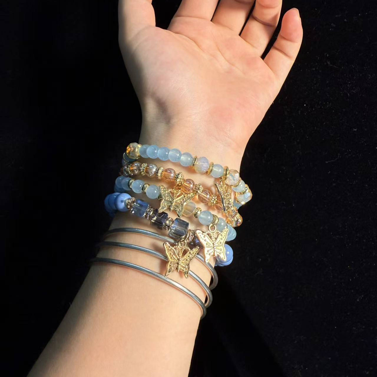 开花的橄榄 Vintage古着 Blue Butterfly蓝色多层叠戴手链 手串
