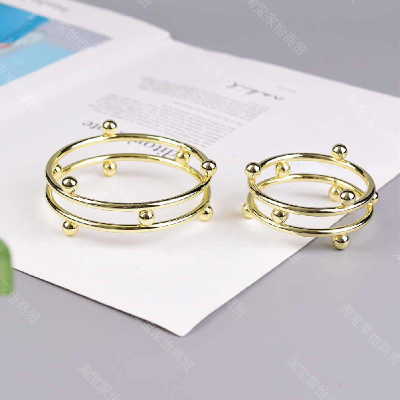 合金电镀铁艺金属双圈金色银色水晶球底座创意底托