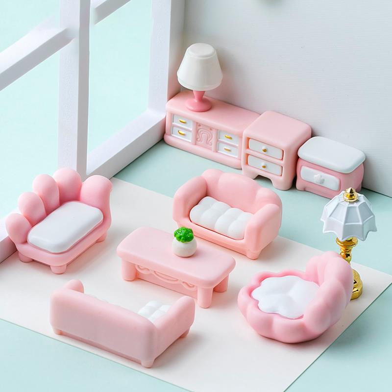 创意微缩客厅粉色家具床沙发桌衣柜小摆件 娃屋手工diy装饰品配件