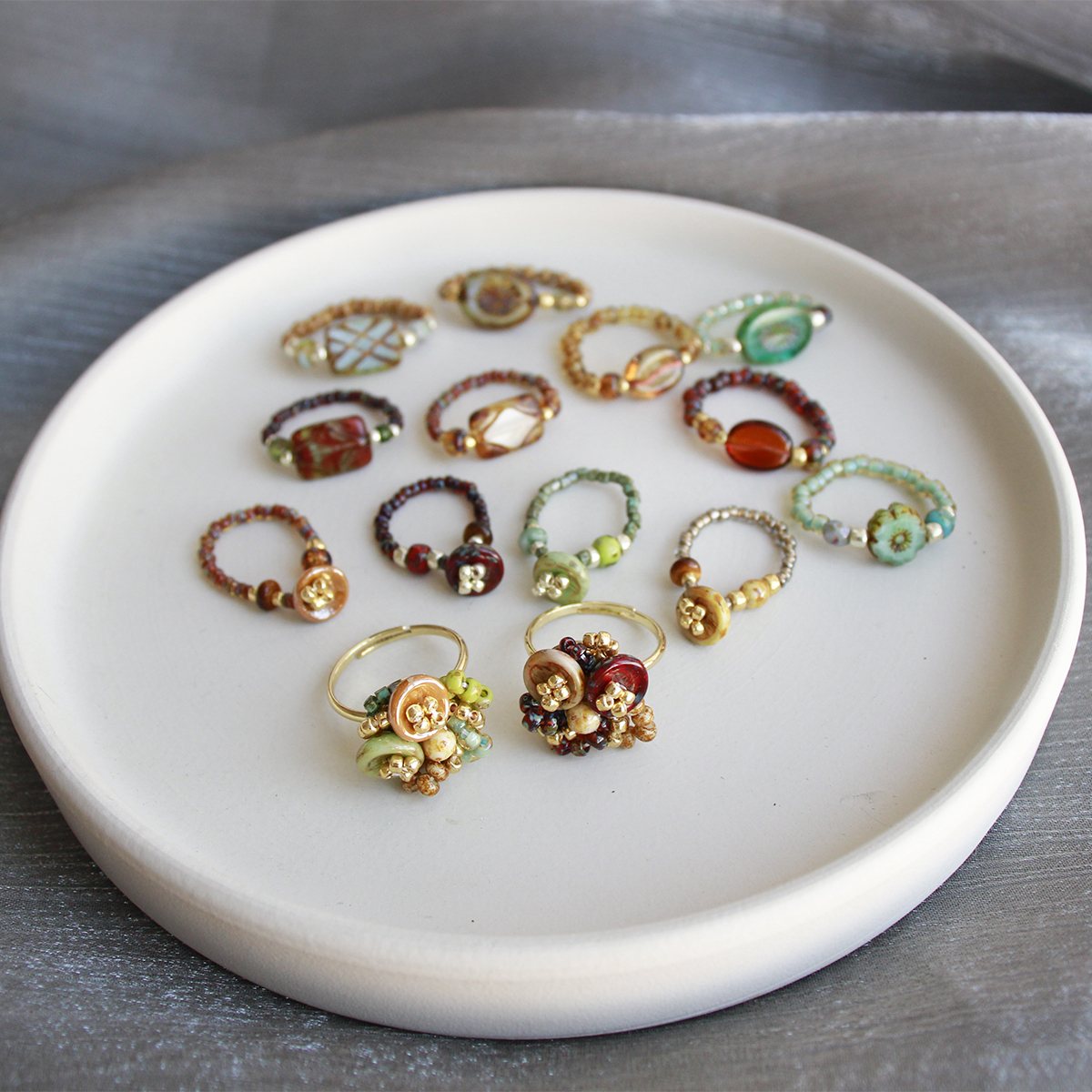 月似弓原创Vintage复古小众捷克珠艺术感手作串珠戒指