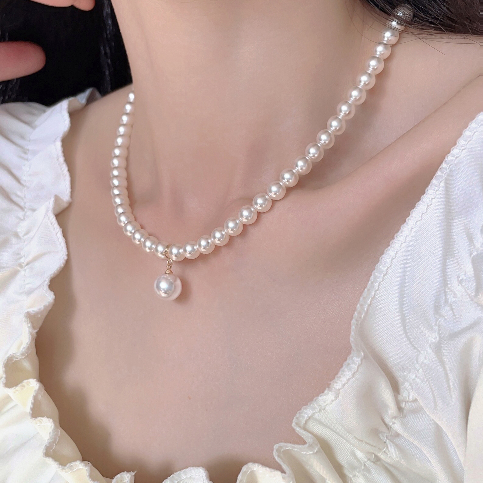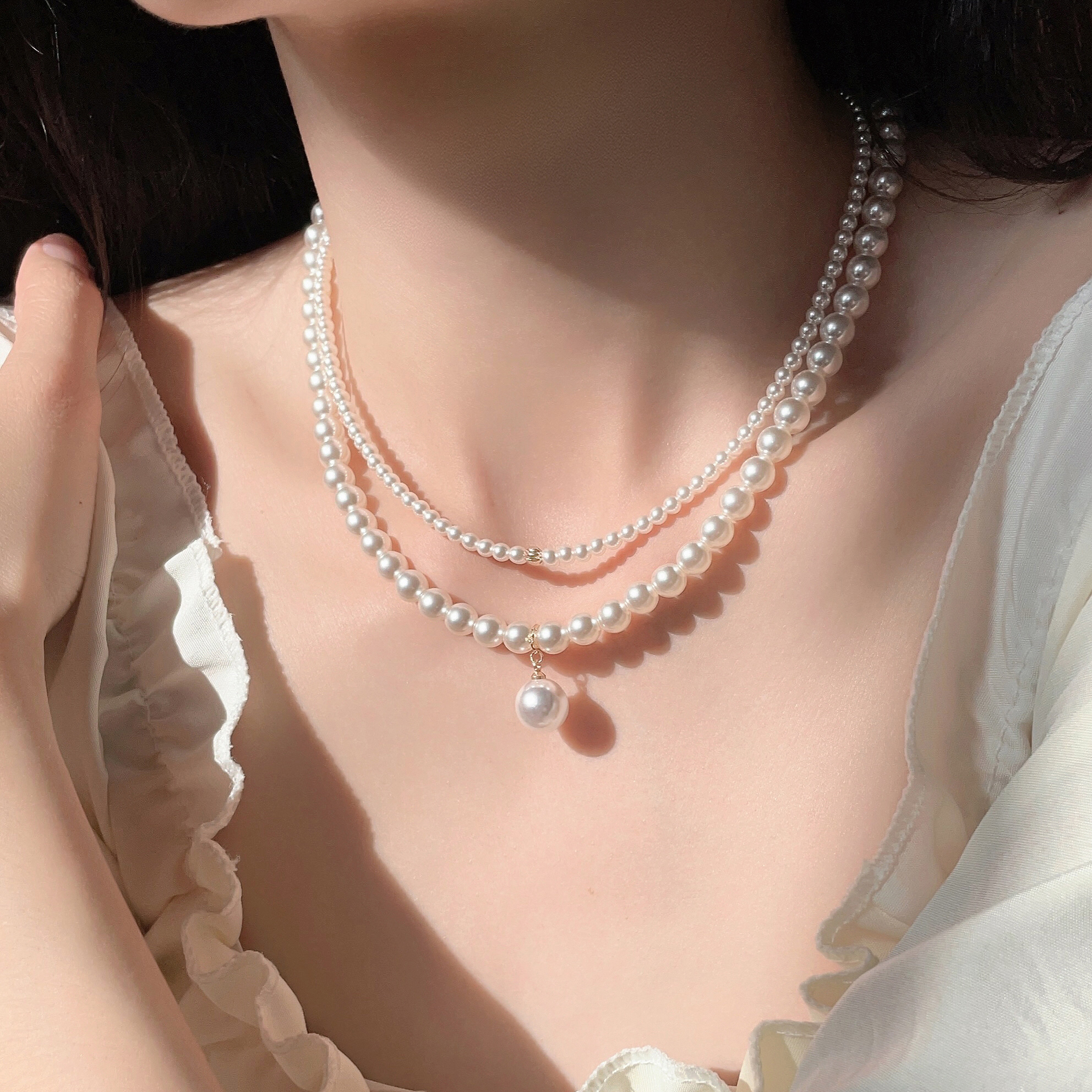 日韩叠戴珍珠气质项链女2025年新款爆款小众轻奢锁骨链高级感颈链