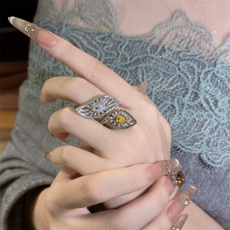 欧美复古重工精致锆石黄钻镂空设计师款叶子造型个性独特开口戒指