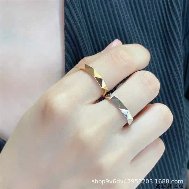 高版本V金菱形满钻光面戒指女cnc切割情侣莫比乌斯环对戒戒指男女