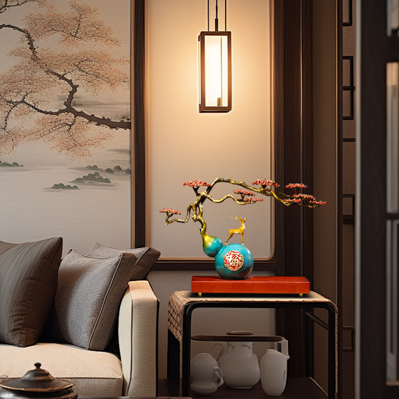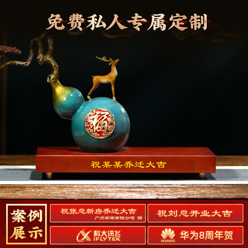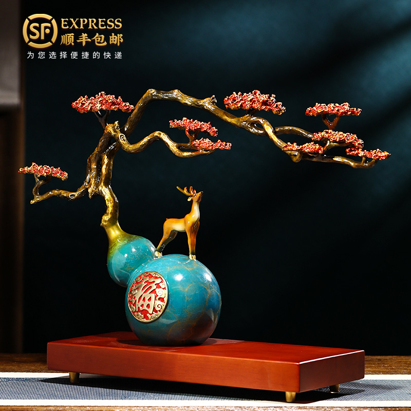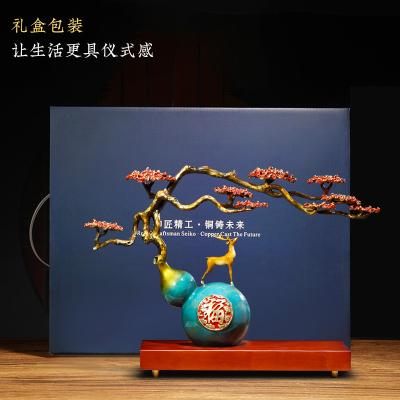 铜葫芦摆件招财福鹿客厅玄关装饰品办公室摆件乔迁新居礼品高档