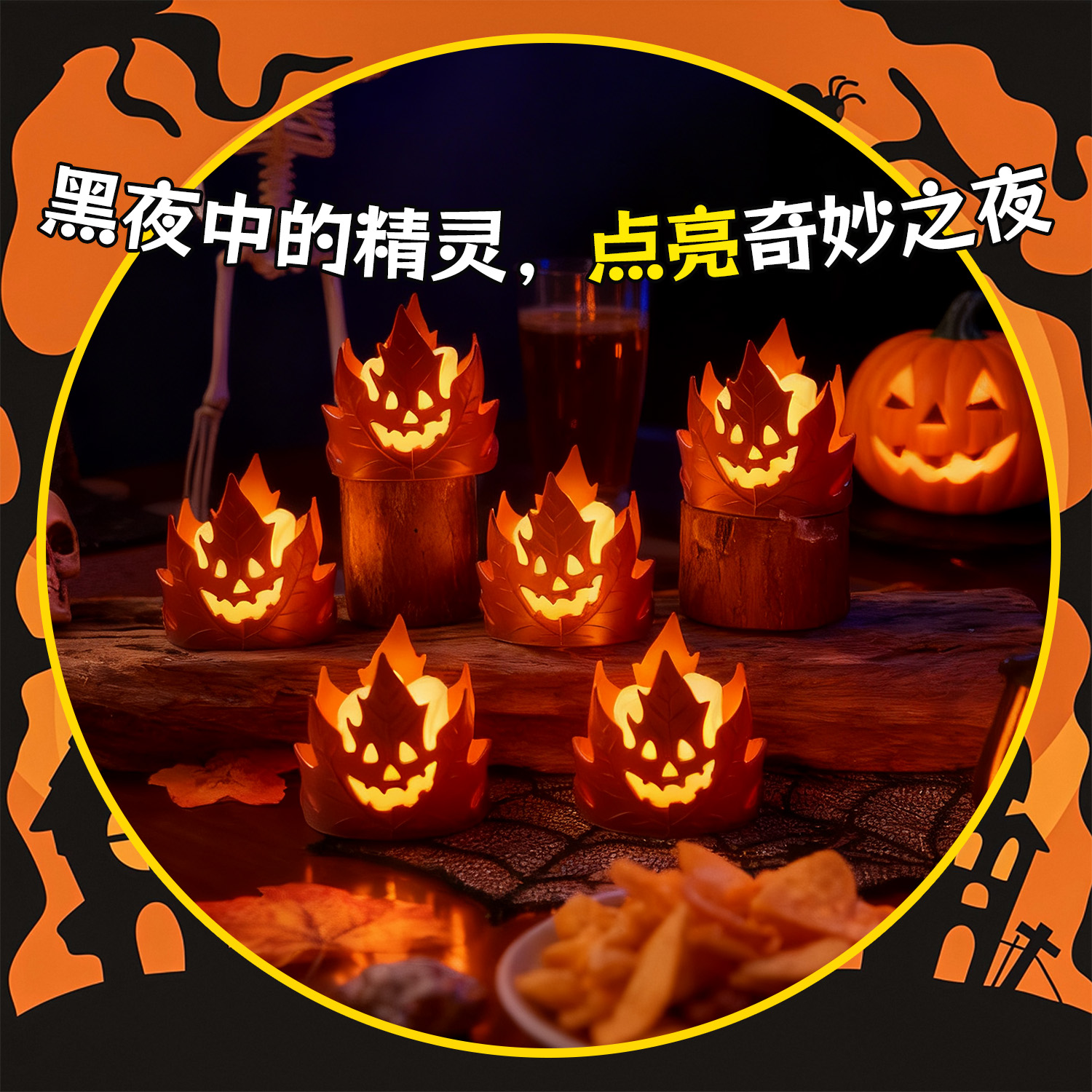 万圣节装饰品桌面摆件树叶幽灵蜡烛灯店铺派对氛围感场景布置道具