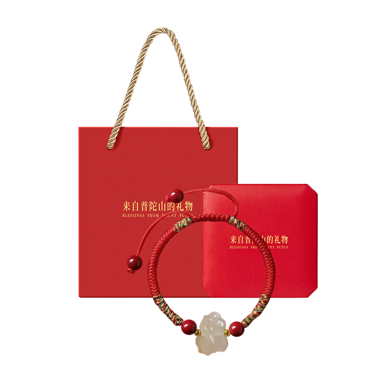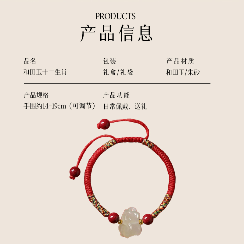 遇见普陀山本命年和田玉马年十二生肖红绳手链好运黑色编织绳手绳