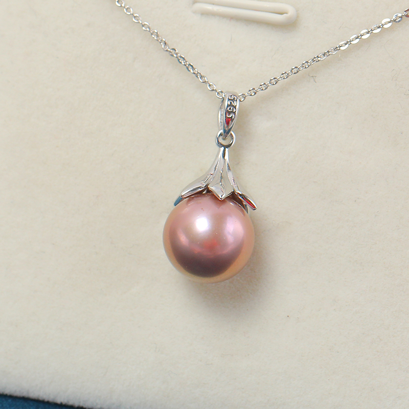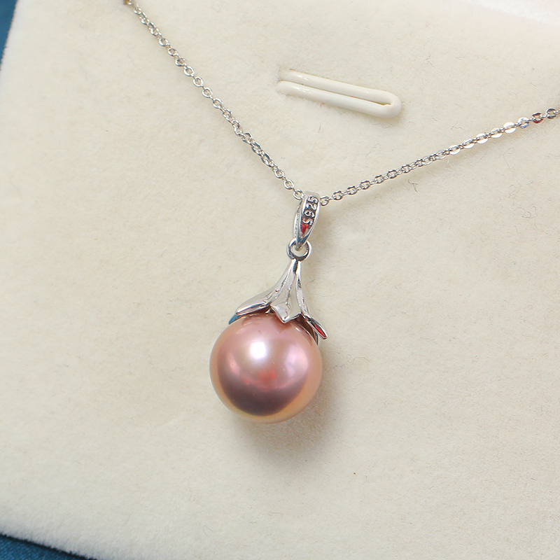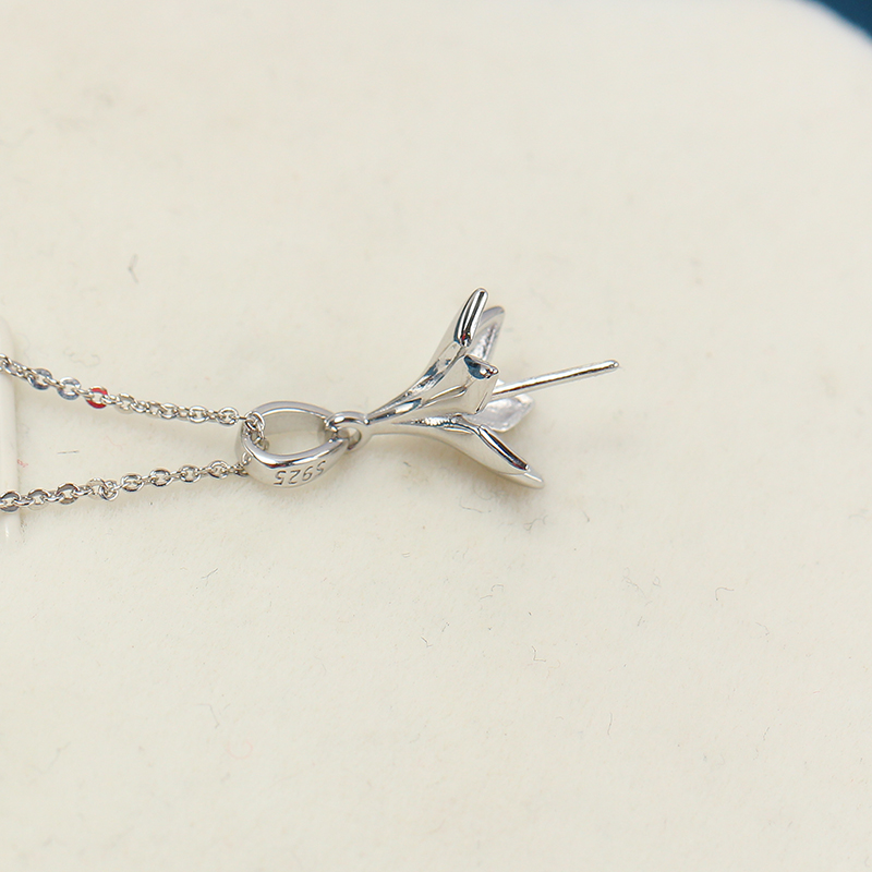 S925纯银 简约花朵珍珠吊坠饰品 玛瑙空托DIY饰品配件 优雅配饰女