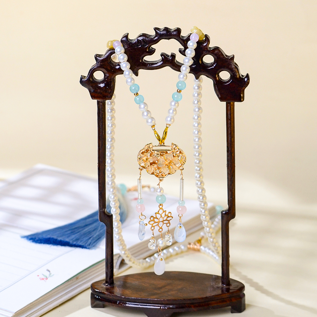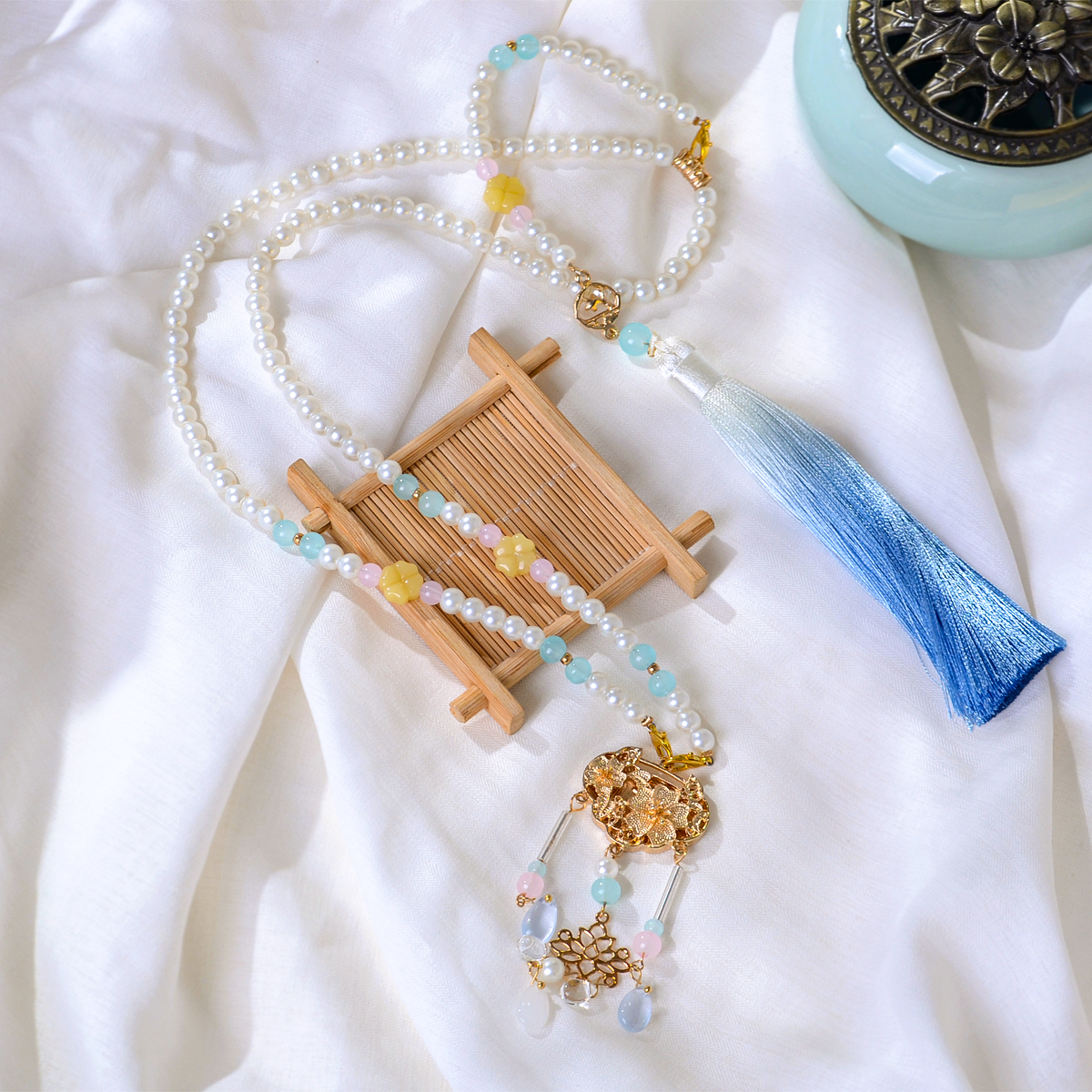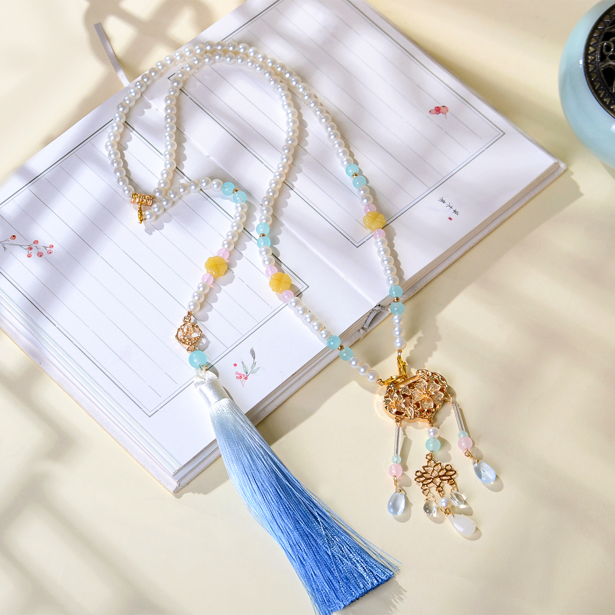 古风明制马面裙吊坠璎珞背云蓝色流苏项圈新中式国风汉服旗袍项链