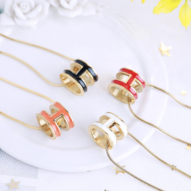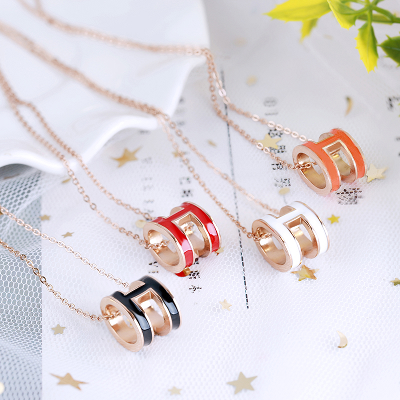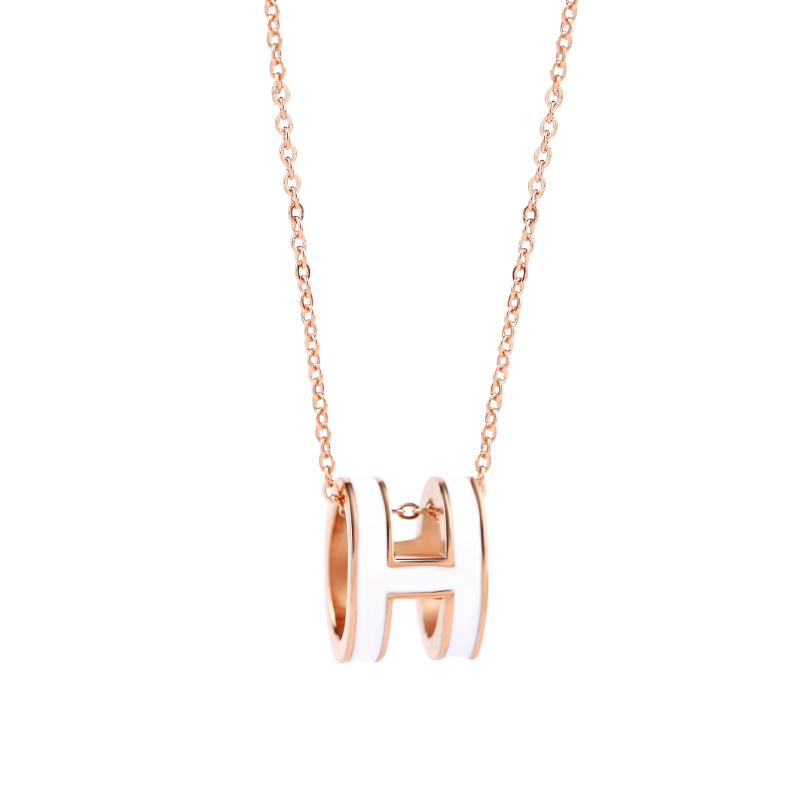 小众轻奢网红韩版时尚h字母锁骨链玫瑰金简约气质项链钛钢不褪色
