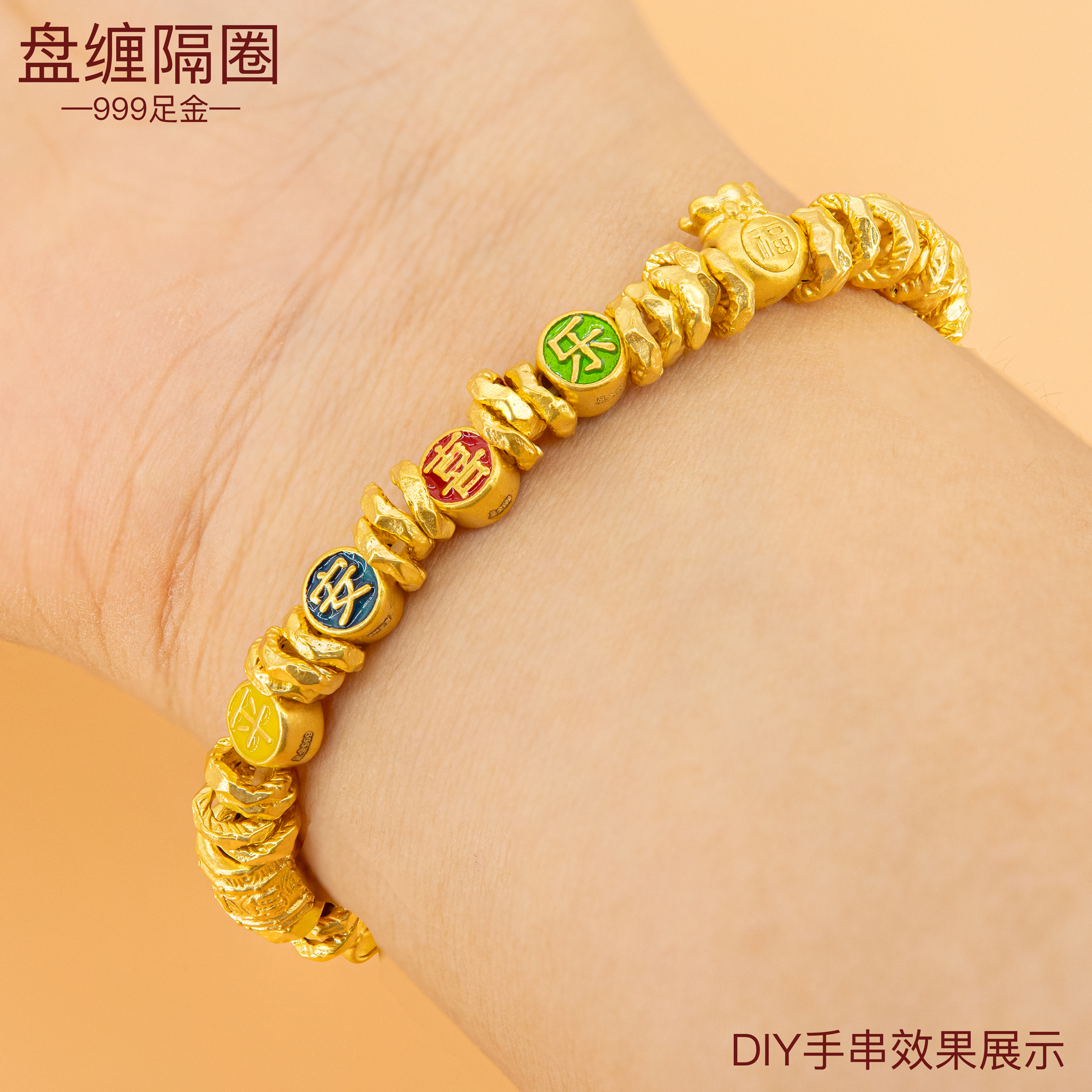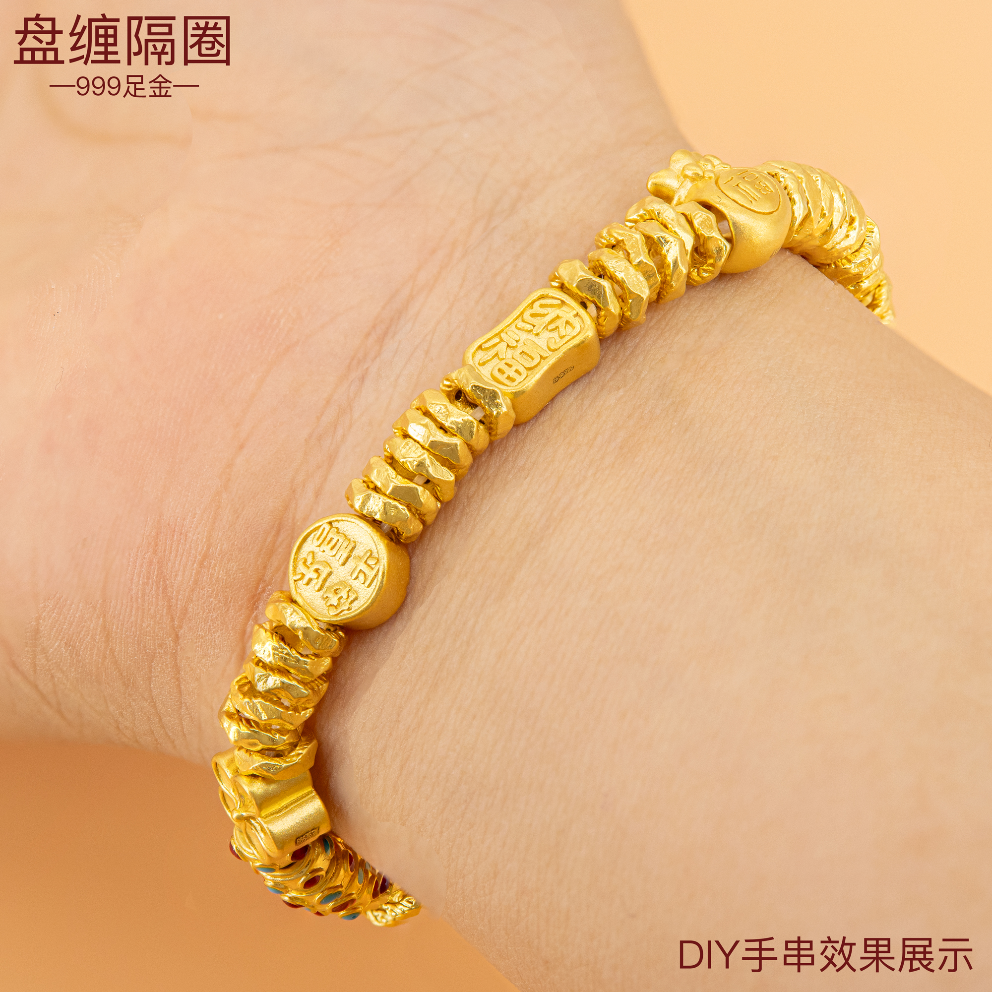 黄金盘缠手链散珠 3D硬金隔片足金999盘缠金隔圈隔珠手串盘缠配件
