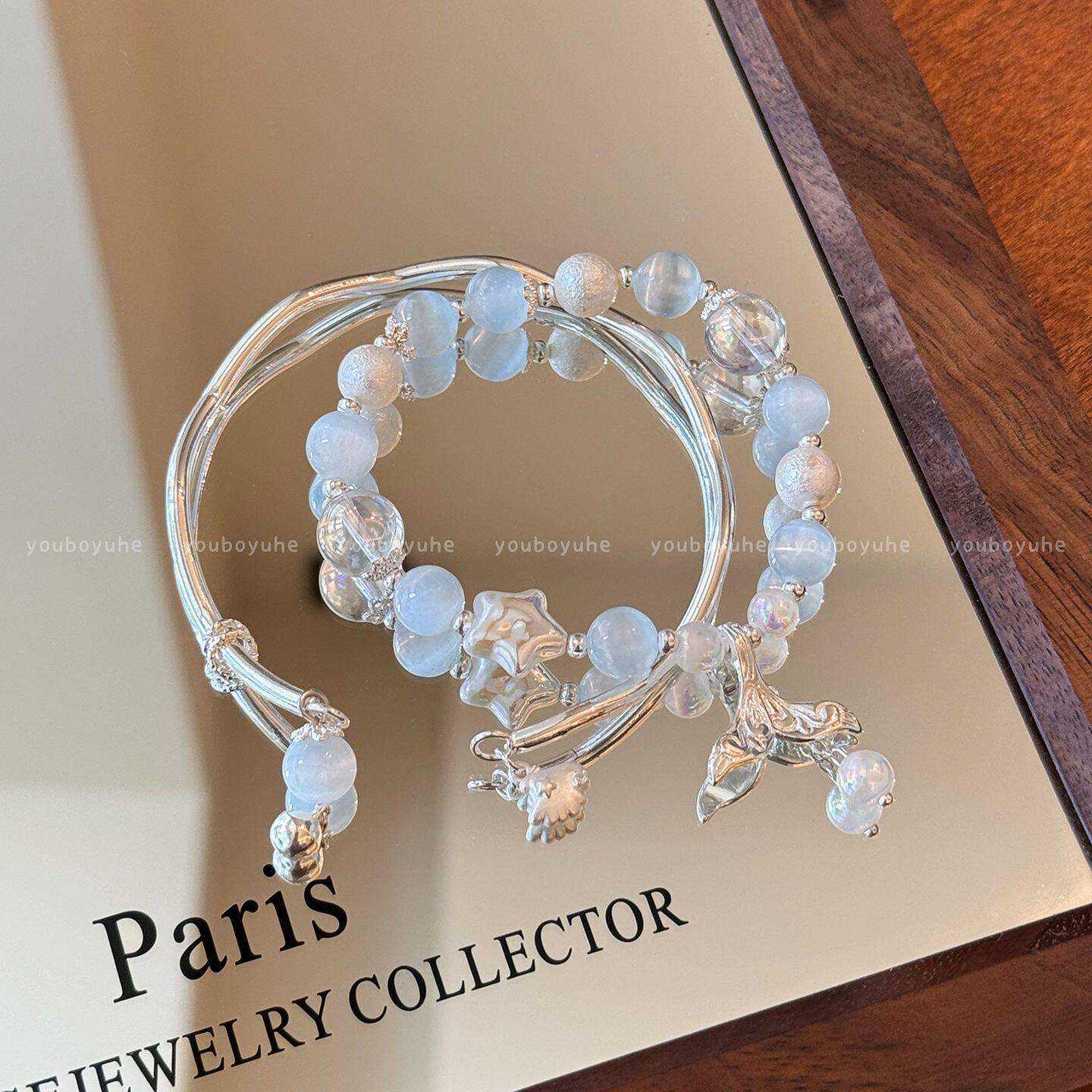 清冷礼物蓝色串珠星星鱼尾手链女叠戴设计高级贝壳手镯高颜值手饰
