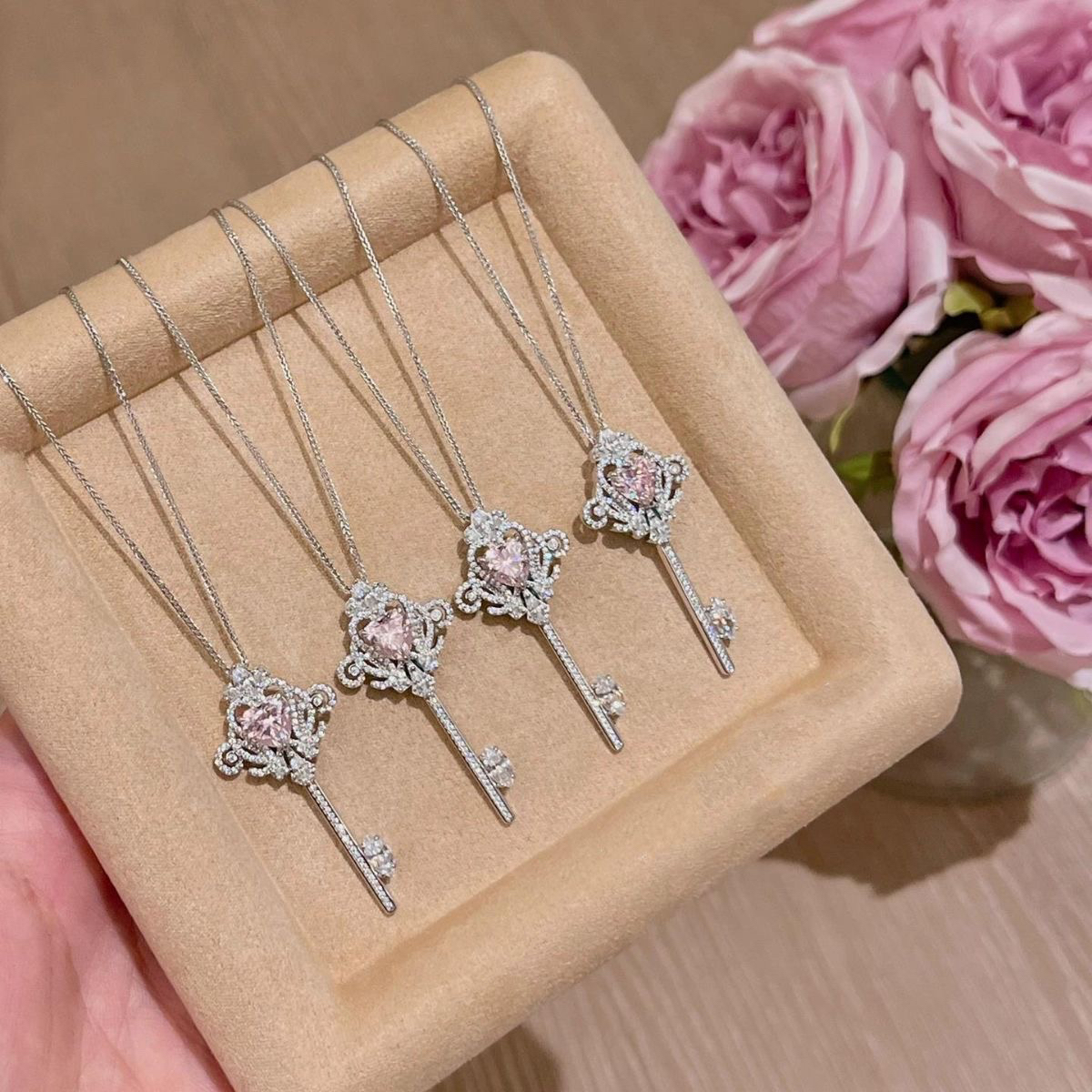 柏诗艾菲樱花粉钥匙吊坠项链轻奢锁骨链女小众设计坠链饰品纯银