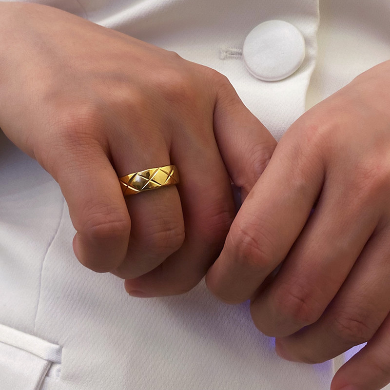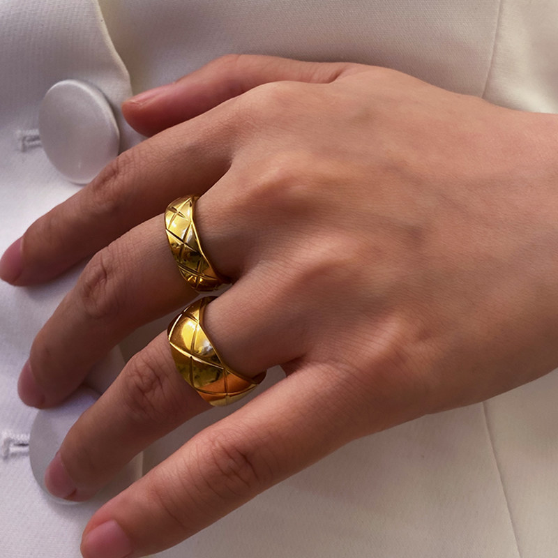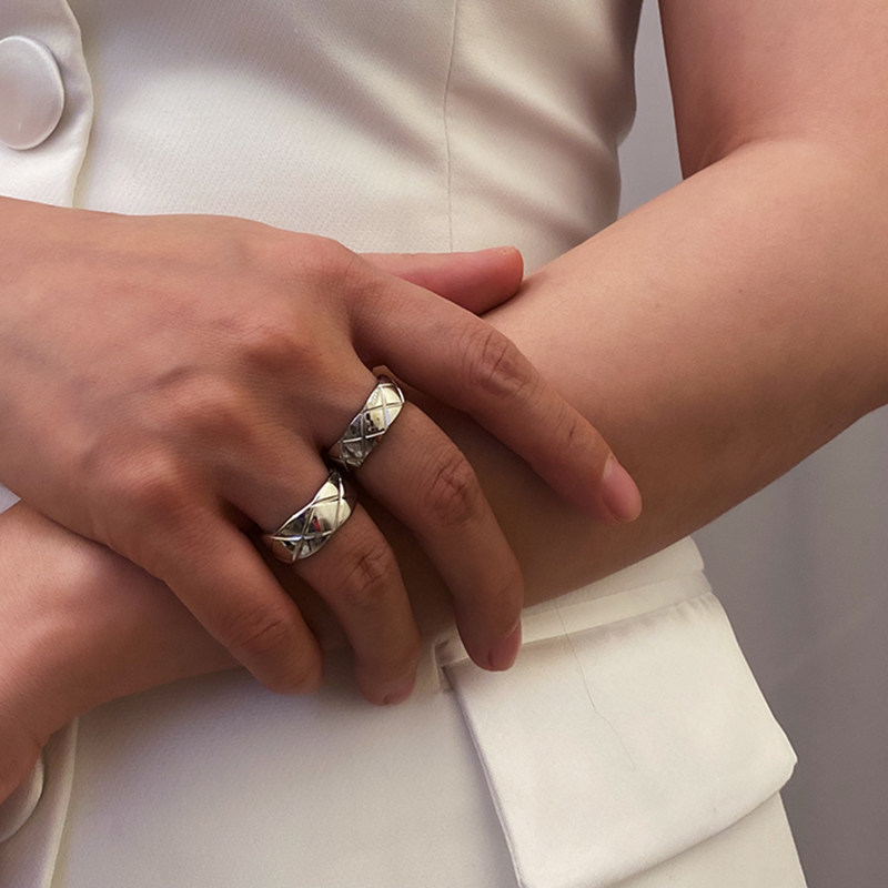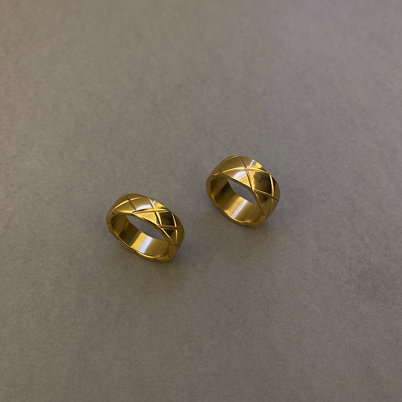 GWE巴黎高级感法式复古欧美菱格纹菱形宽窄戒指叠戴情侣戒钛钢款
