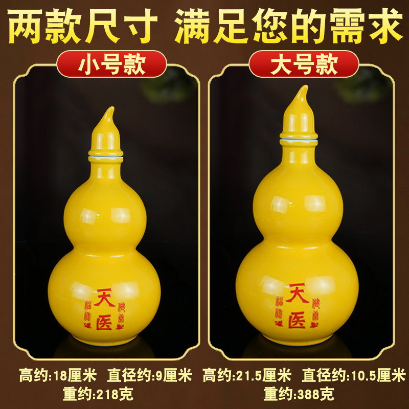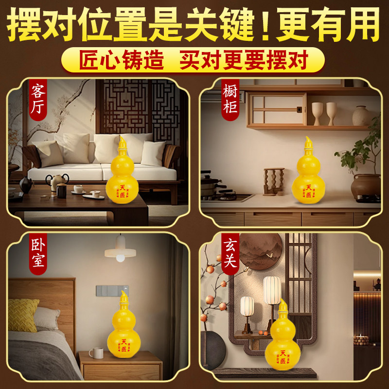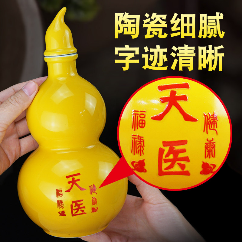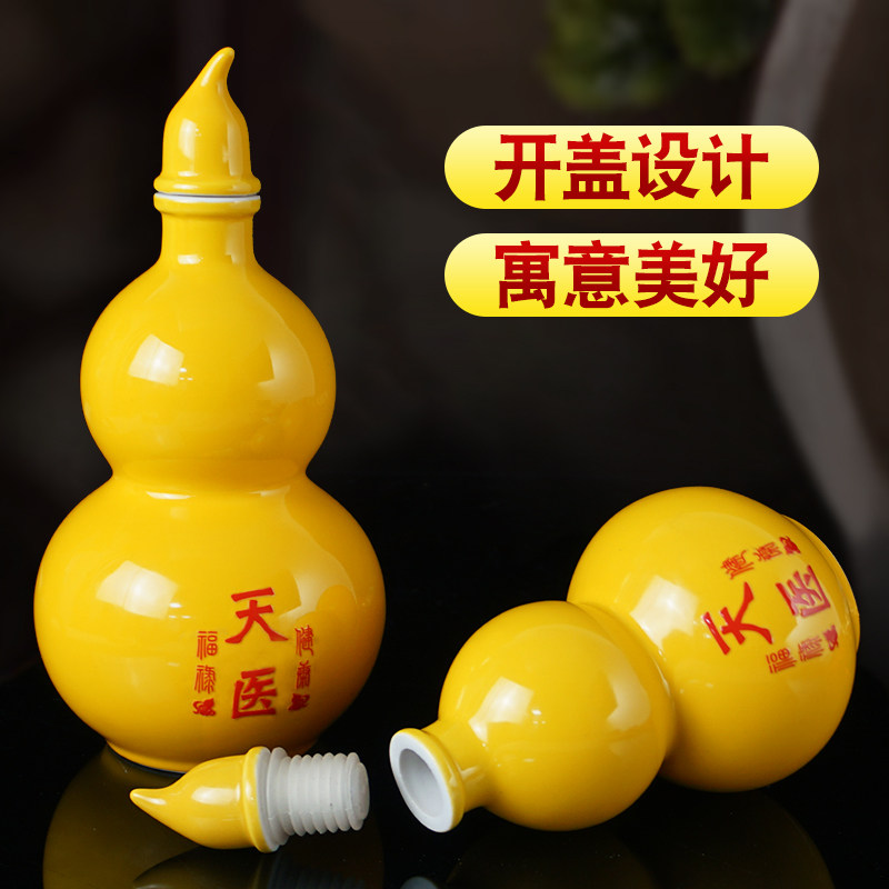 陶瓷天医葫芦黄色开口盖入户门客厅玄关卧室床头桌面吉祥装饰摆件