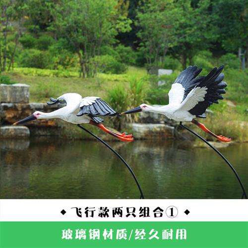 仿真户外雕塑白鹤摆件玻璃钢水池塘白鹭装饰花园林鸟景观仙鹤模型