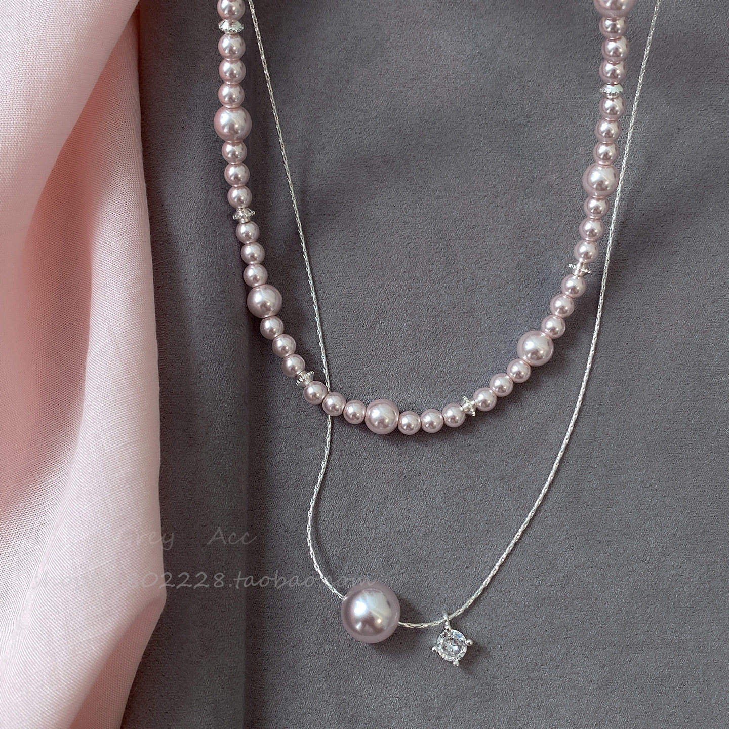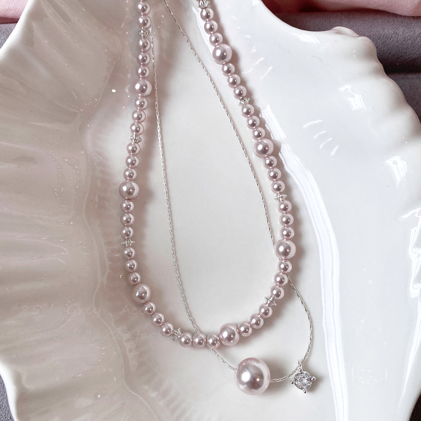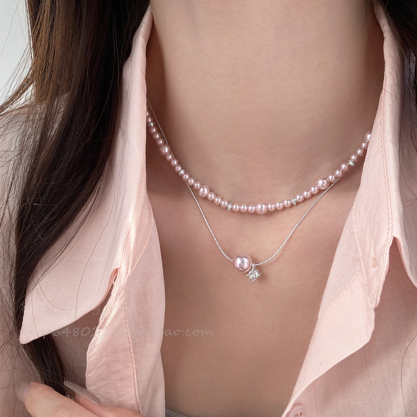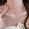 粉色珍珠叠戴项链女搭配礼服裙子锁骨链精致轻奢高级小众颈链配饰