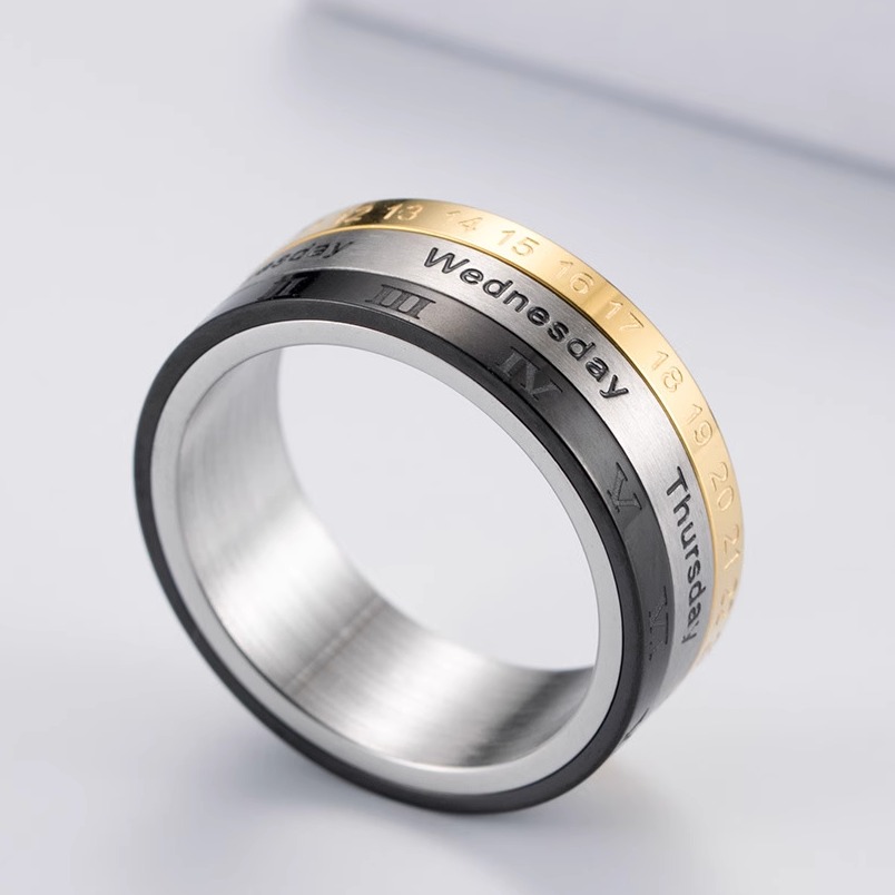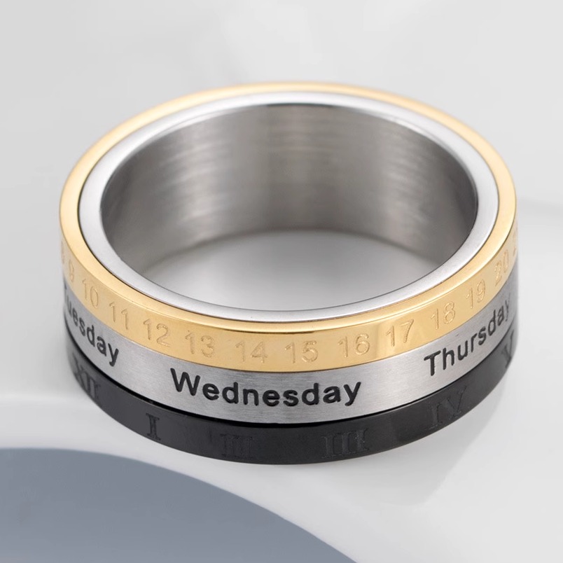 简约潮人时尚钛钢时间日历戒指 罗马数字单身指环男士朴素手饰品