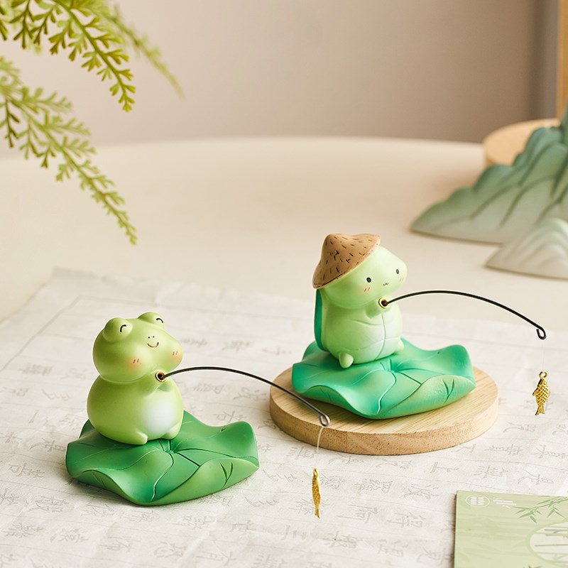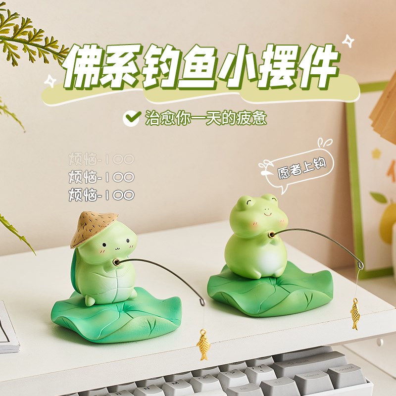 青蛙乌龟钓鱼g办公室工位情绪稳定神器桌面摆件解压鱼缸造景装饰