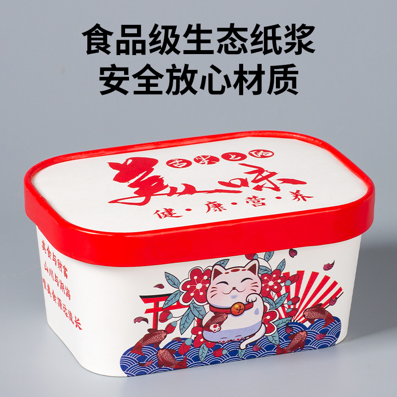 国潮牛皮纸打包盒一次性方盒长方形饭盒商用水果沙拉轻食外卖餐盒