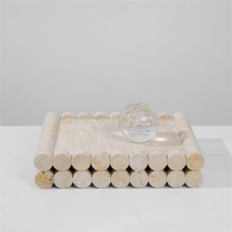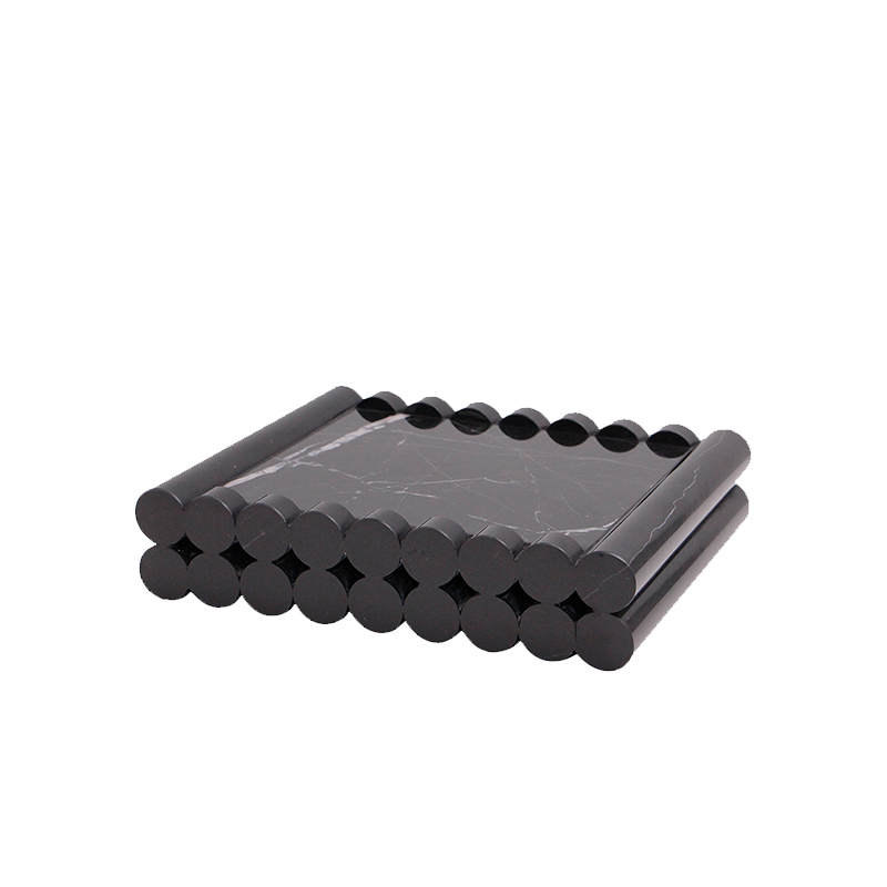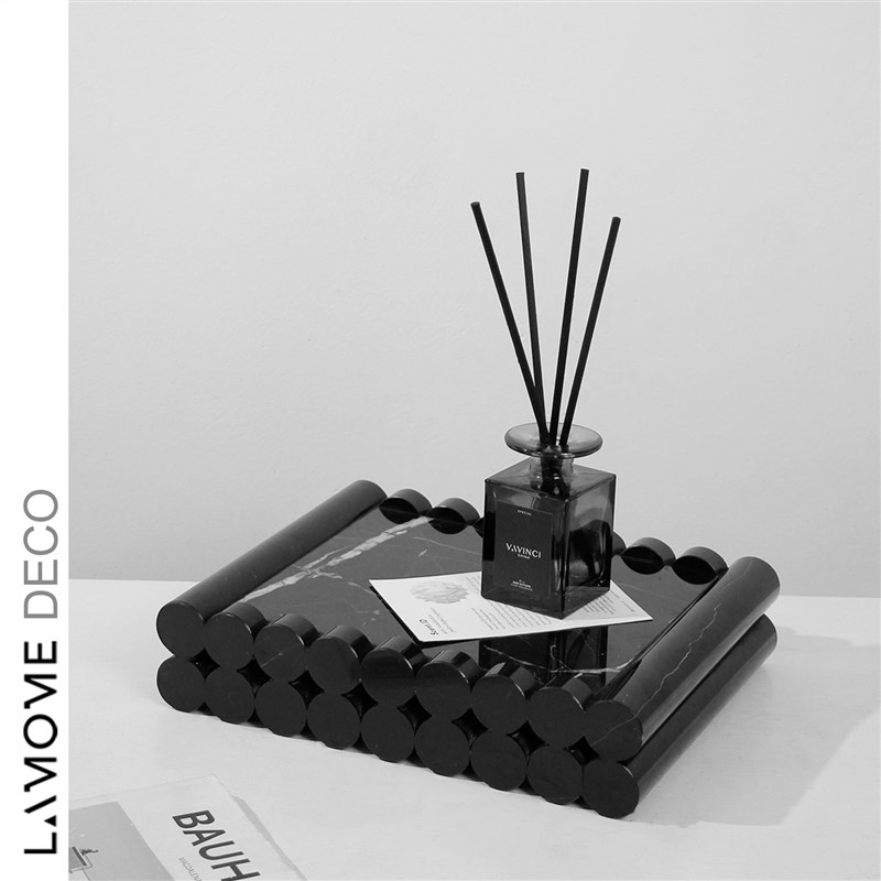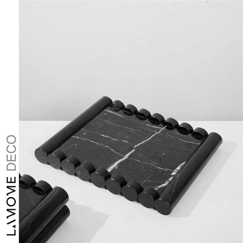 现代轻奢黄色洞石托盘样板间售楼处客厅餐厅桌面U大理石收纳摆盘