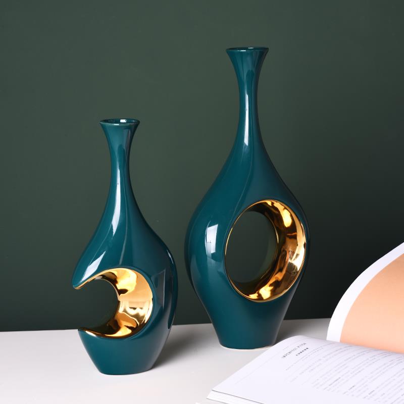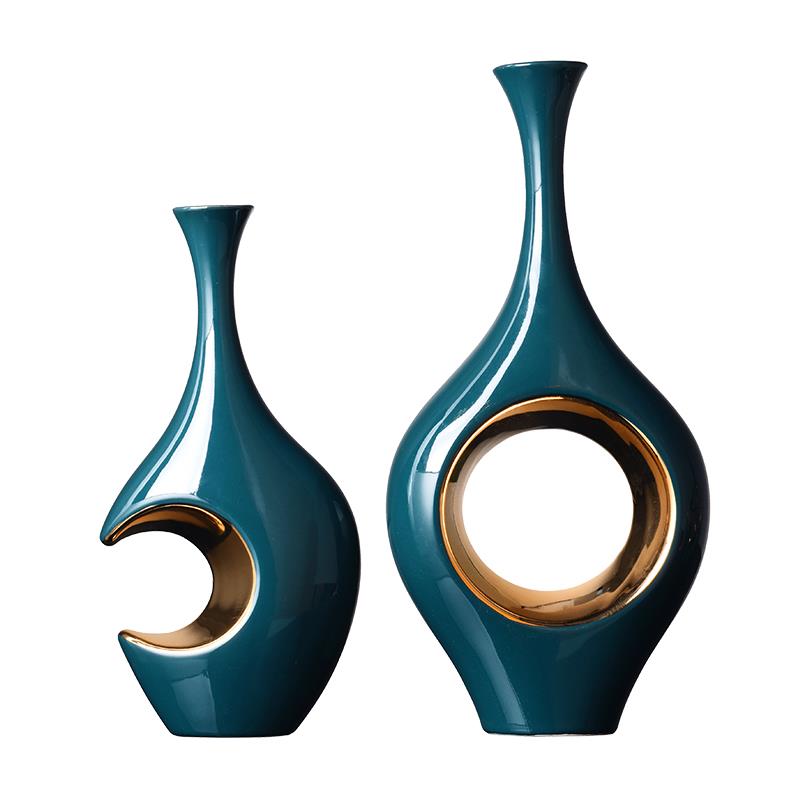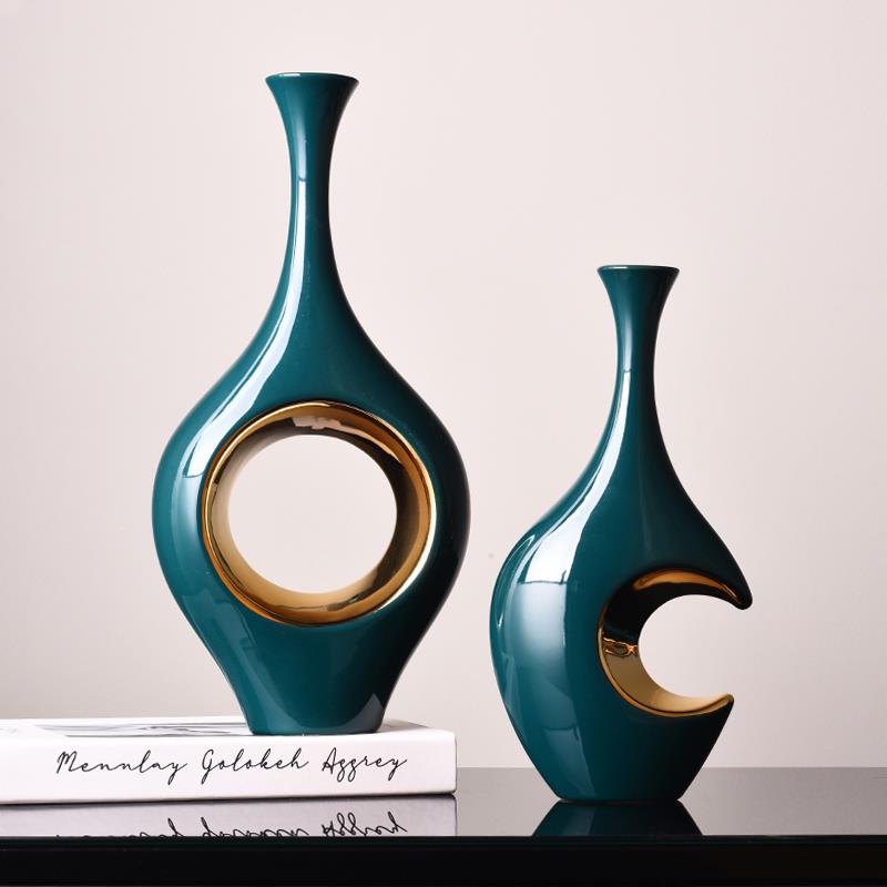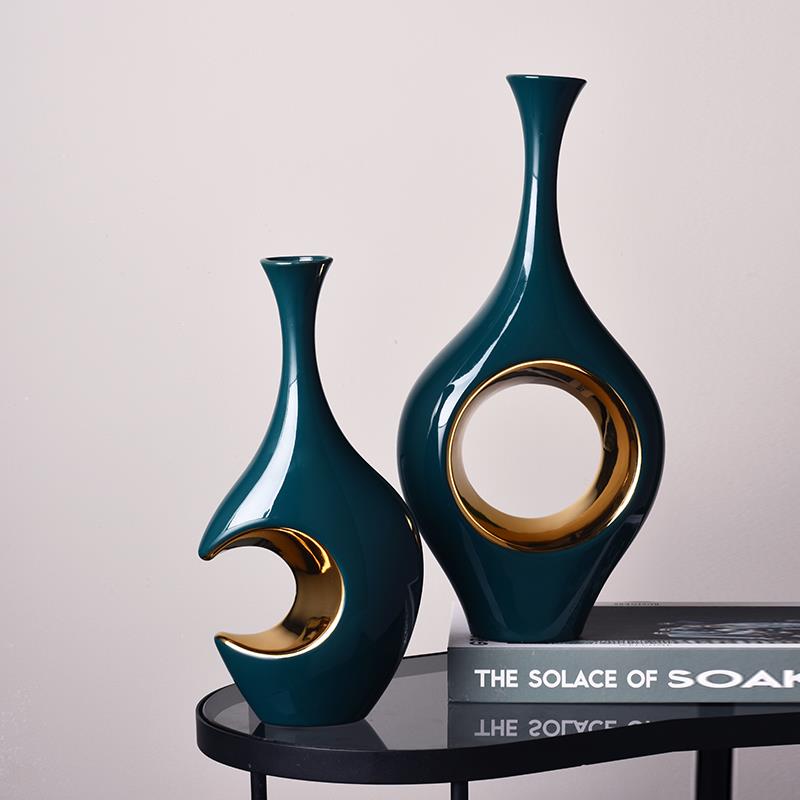 现代轻奢软装摆件创意电视柜陶瓷日月花瓶家居客厅酒柜玄关装饰品