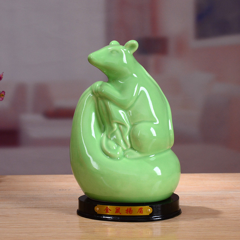 陶瓷十二生肖绿色兔子摆件可爱属相工艺品招财风水现代家居装饰品