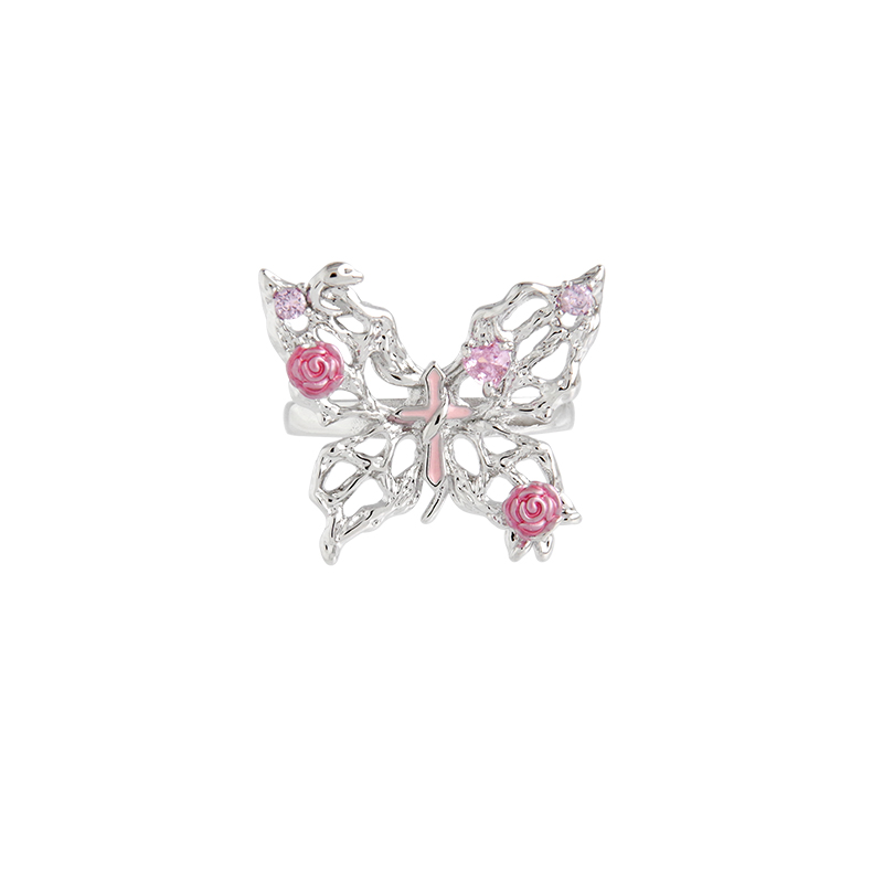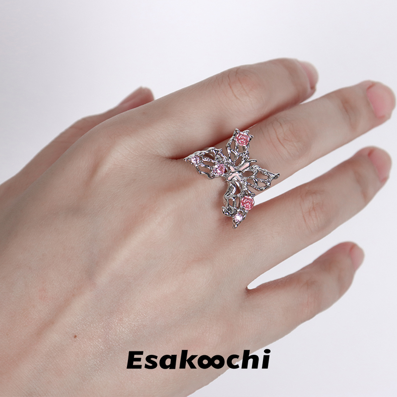 Esakoochi少女的祈祷~原创个性镂空蝴蝶戒指开口可微调原创小众