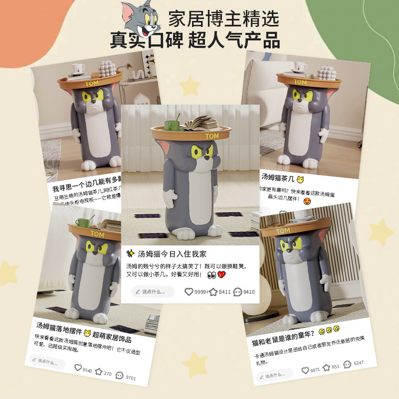 卡通汤姆猫茶几创意客厅沙发摆件落地边几可爱床头柜家具猫和老鼠