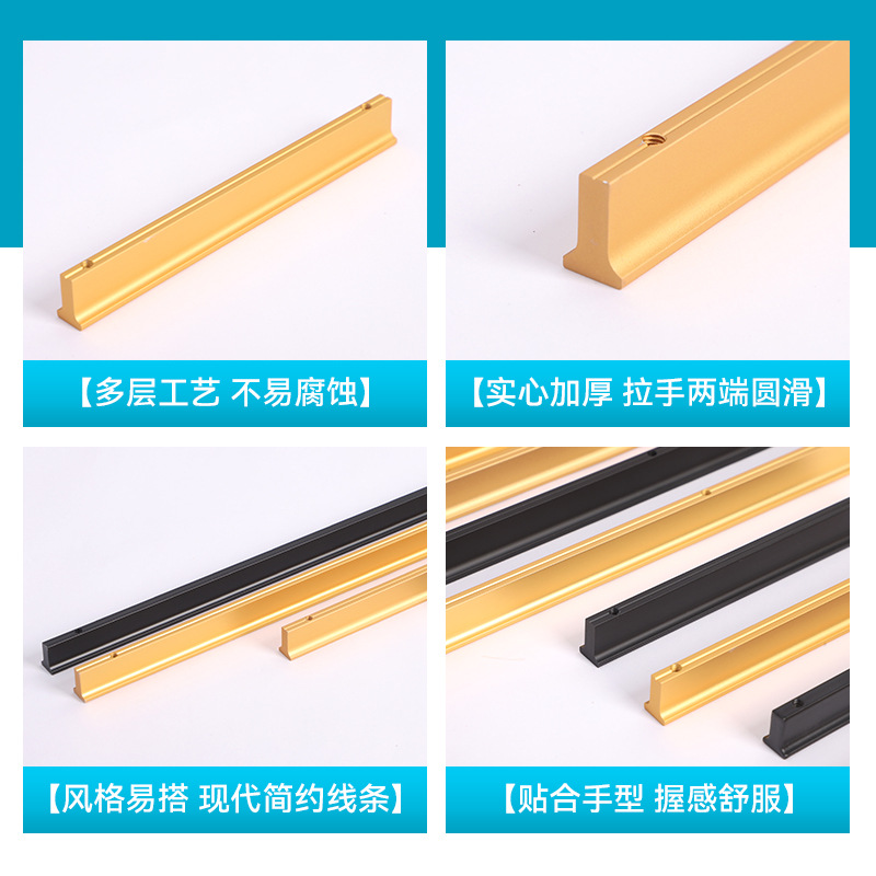 轻奢拉手衣柜门拉手拉丝黑金色橱柜鞋柜加长一米抽屉一字型门把手