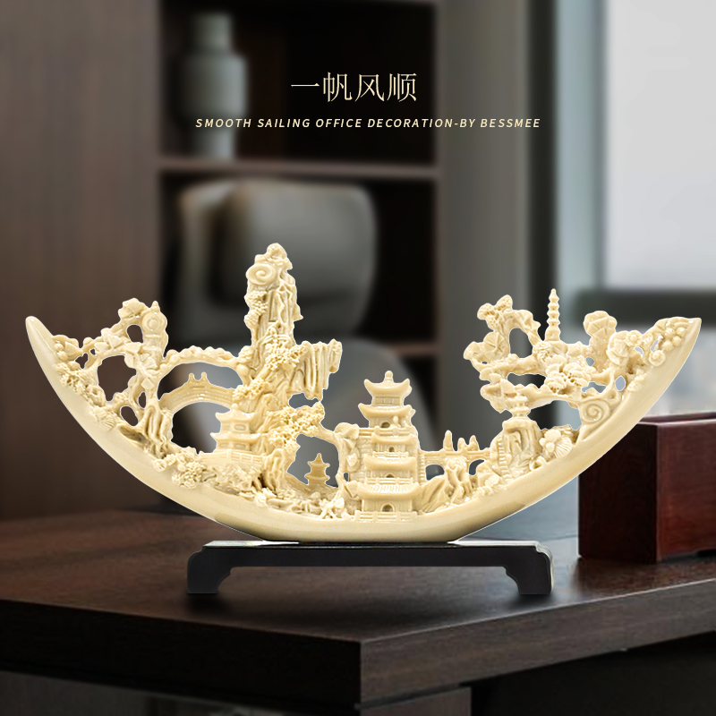 玉石仿猛犸象牙治愈系高级感办公室茶台桌面客厅装饰摆件乔迁礼物