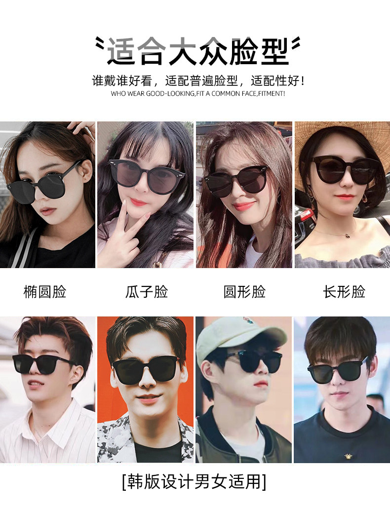 GM黑色框墨镜网红女士潮街拍显瘦偏光太阳眼镜男士遮阳开车眼镜