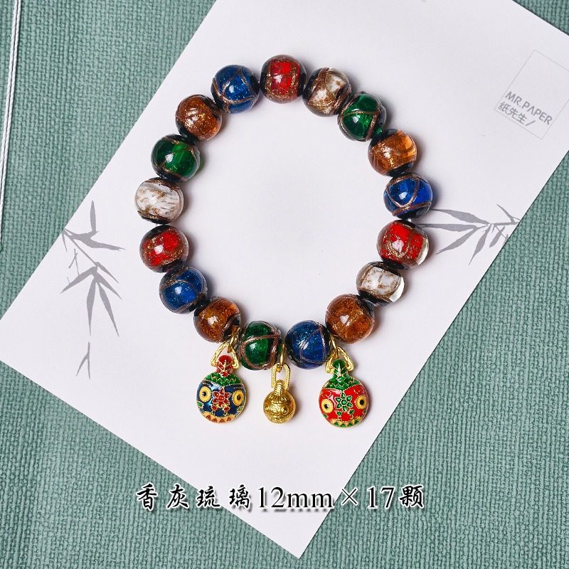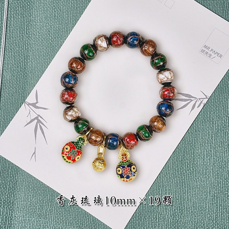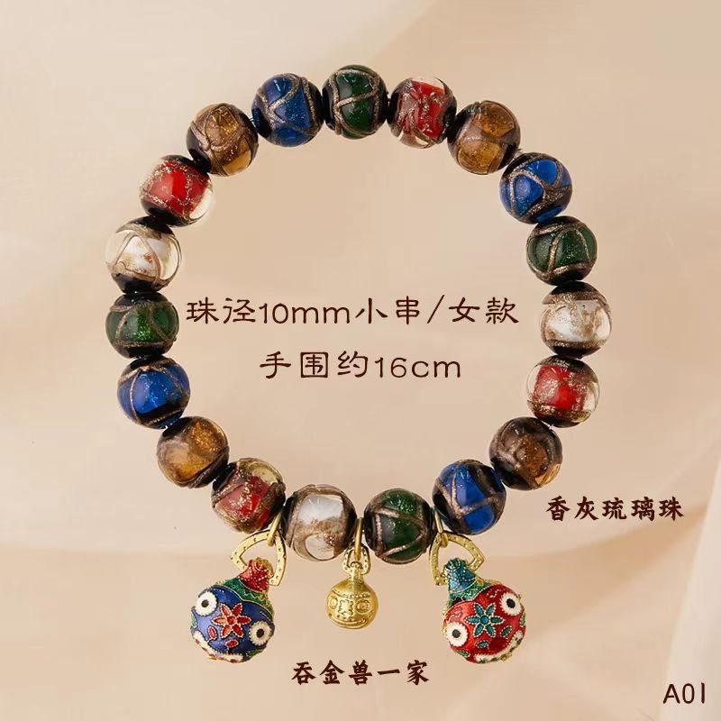 香灰琉璃手串男女情侣礼物五彩古法吞金兽手链珠饰品民族风